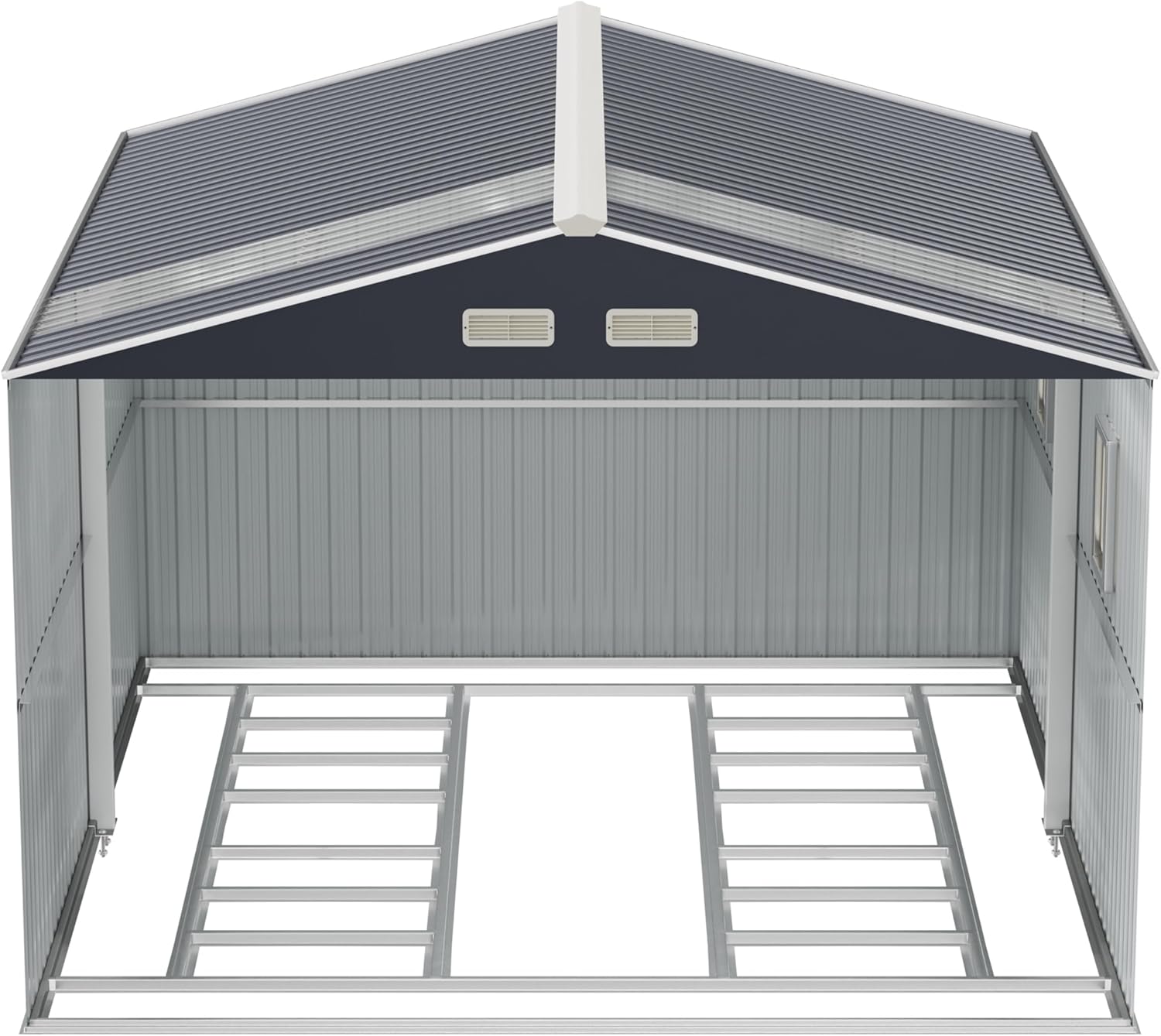 10x12 Metal Shed with Floor Frame Kit & Reinforced Construction - Translucent Roof Panels for Natural Light, Lockable Doors, Vents and Windows | Weatherproof Outdoor Storage for Garden/Backyard/Patio