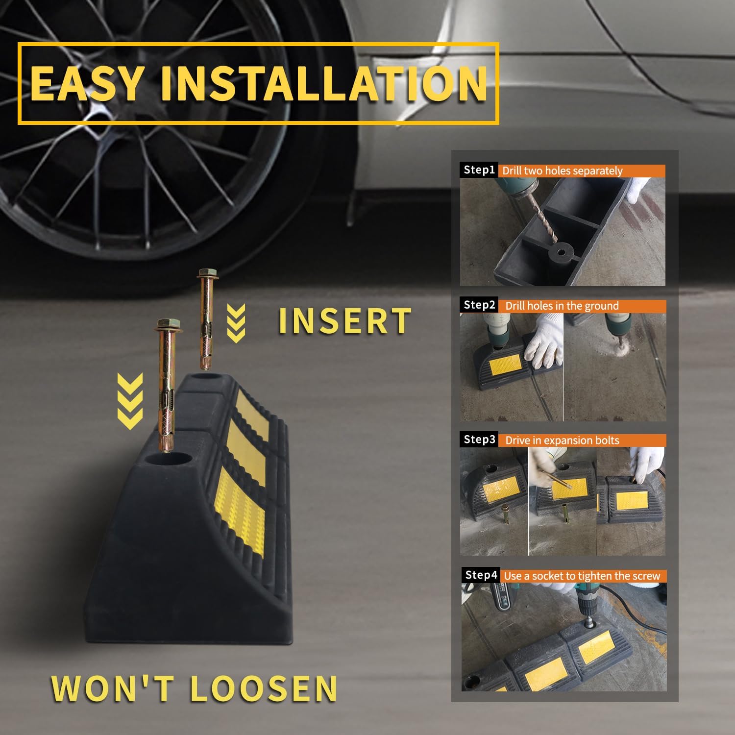 - 【High Weight Support - 33,000 lbs】 With a height of 3.5 inches, this stopper is engineered to effectively block vehicle movement and prevent accidental overruns. Secure installation to the floor is supported via bolt anchoring.