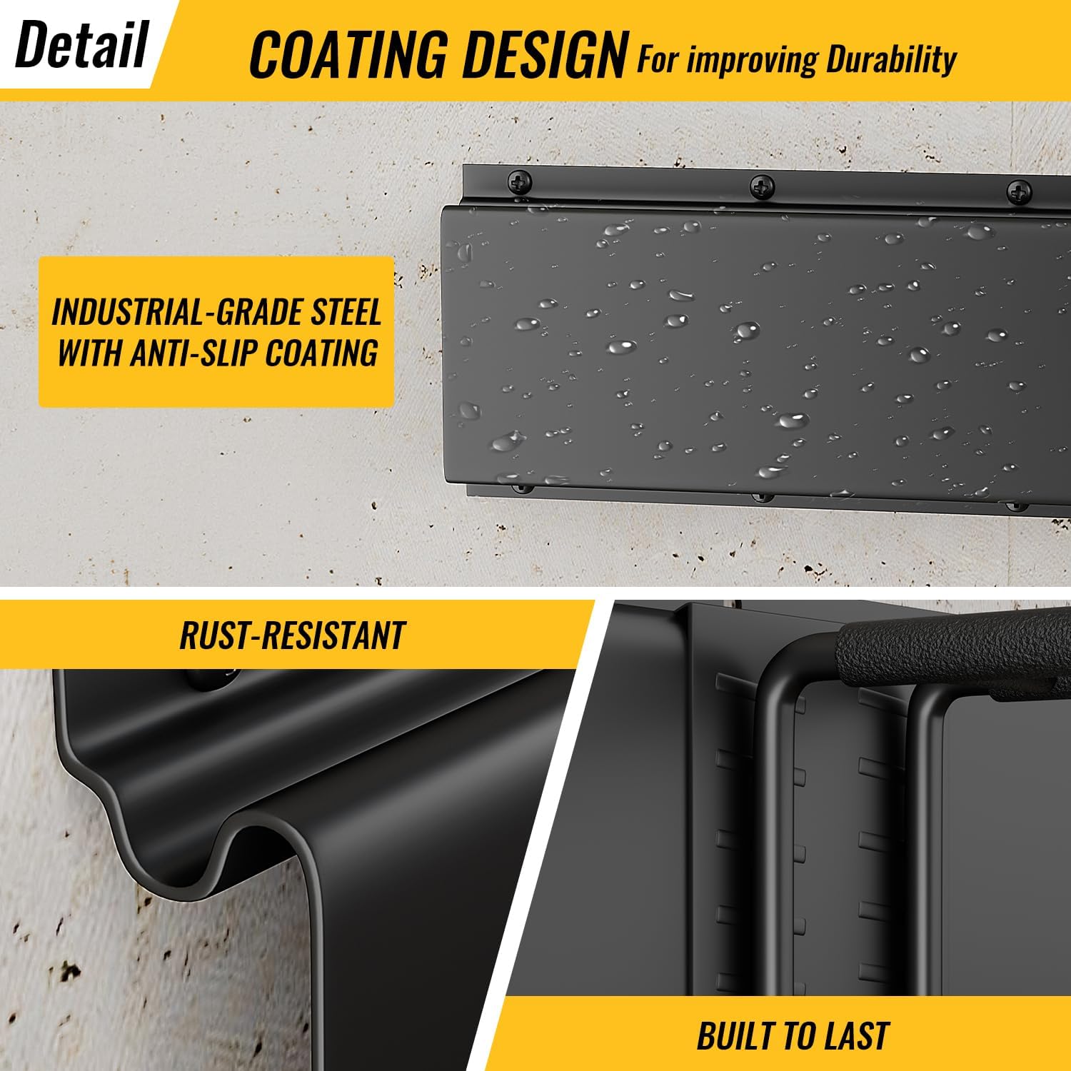 - 【Heavy-Duty Garage Tool Rack – 48" Rail, Holds Up to 540 lbs】Built with reinforced steel, this garage tool rack features a 48-inch wall-mounted rail and is designed to securely hold shovels, rakes, and other heavy garden tools. Perfect for any garage or garden shed.