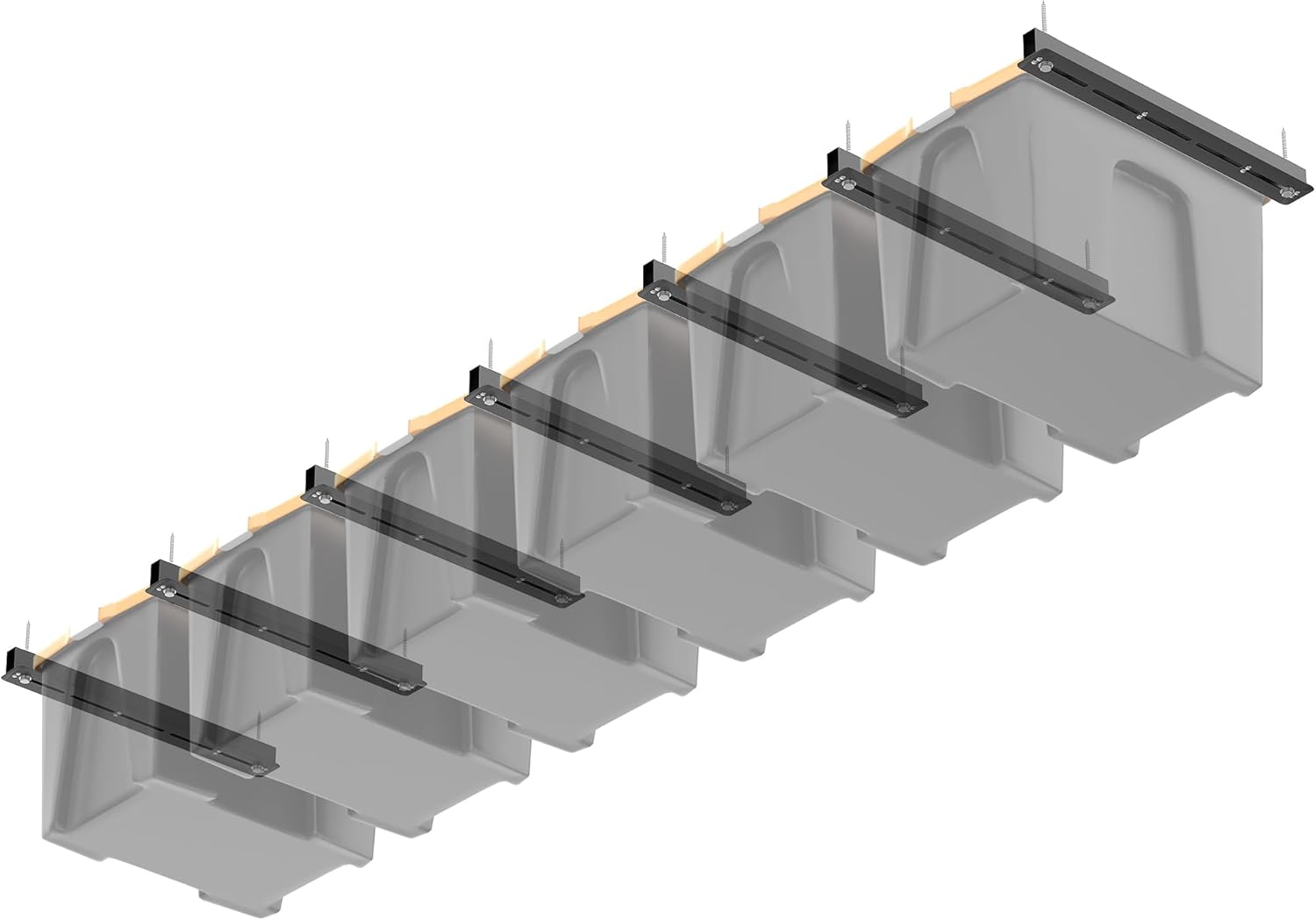 - Convenient Installation: This ceiling rack mounts easily to 16-inch or 24-inch ceiling studs and comes with detailed instructions and hardware. It fits 7-27 gallon storage bins, offering a simple and efficient solution for maximizing ceiling storage
