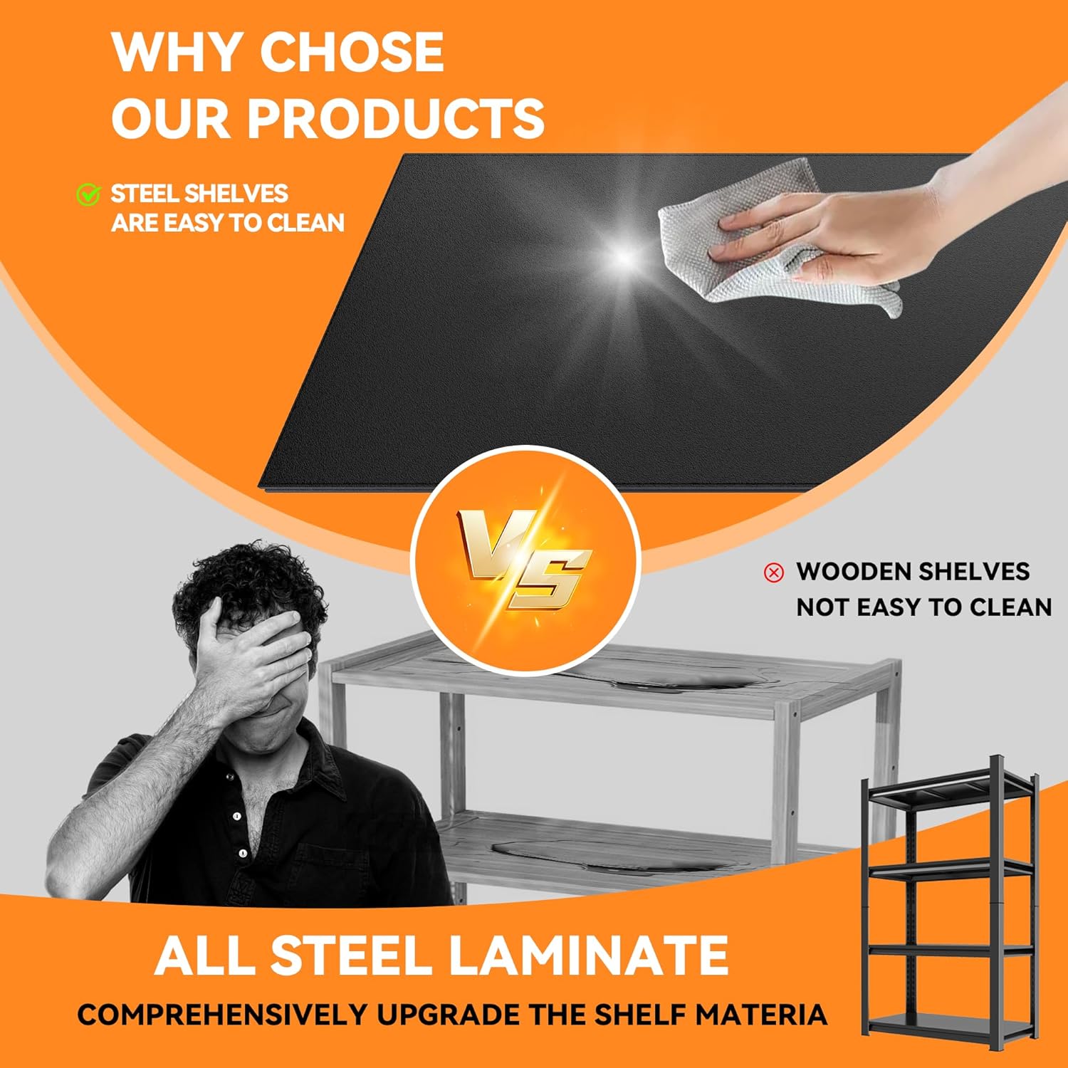 - 【HIGH QUALITY MATERIAL GUARANTEE】 The shelves are made of high-quality metal with powder coated surface, which has excellent anti-rust performance. The specially treated rust-resistant coating allows the shelf to remain shiny and new in humid environments. This moisture- and rust-resistant, scratch-resistant metal shelf will maintain its superior durability and reliability for years to come, and all you need to do is wipe it down with a dry or damp cloth to make it look brand new.
