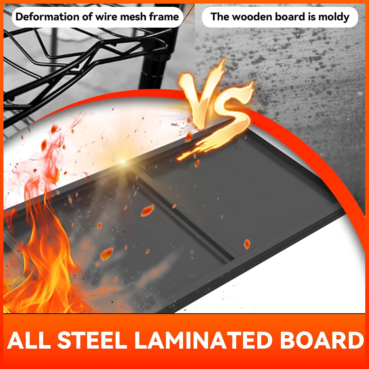 - 【Extremely Sturdy & Durable Garage Shelving】Constructed from high-strength premium cold-rolled steel with advanced powder-coated technology, this metal shelving unit resists rust, oxidation, and wear. The industrial-grade coating not only enhances aesthetics but also boosts durability, making it a heavy-duty shelving solution for long-term use