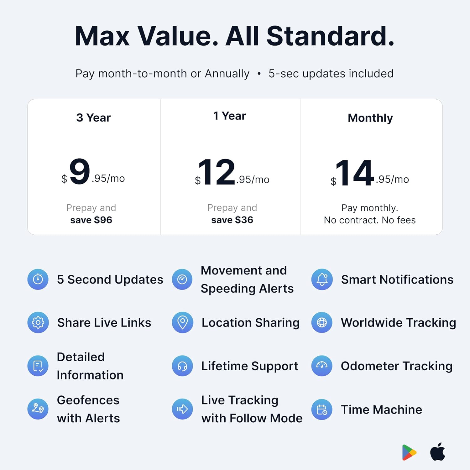 - LOW COST PLAN: Our wired vehicle GPS tracker requires a subscription to our easy-to-use mobile and desktop apps. Simply activate the device, choose your plan, and start tracking. Subscriptions start at $9.95/month(USD) tri-annually or $14.95/month(USD), month-to-month. Get free 24/7 support on GPS trackers with an active subscription. Worldwide coverage - update Network Mode in app before leaving the country.