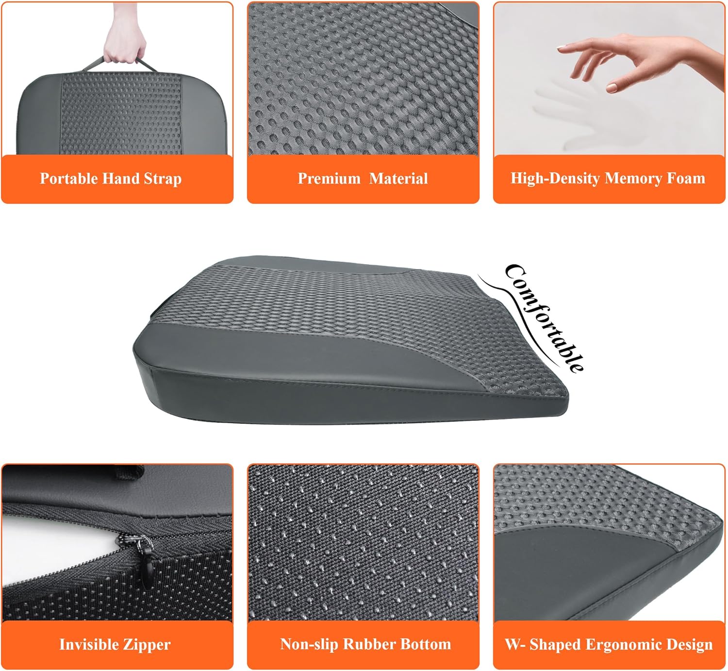 - Ergonomic Car Cushion - Our seat cushion for car seat driver provides maximum support and comfort for your back and hips. Besides, our cushion could help form a correct posture to relieve fatigue or pain caused by sitting too long. The W-shaped seat cushion for car can closely fit the curve of your legs for comfortable driving
