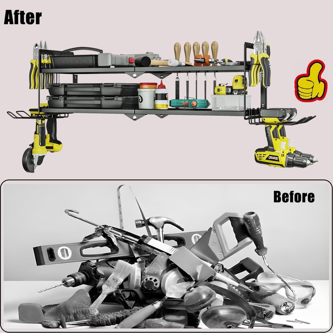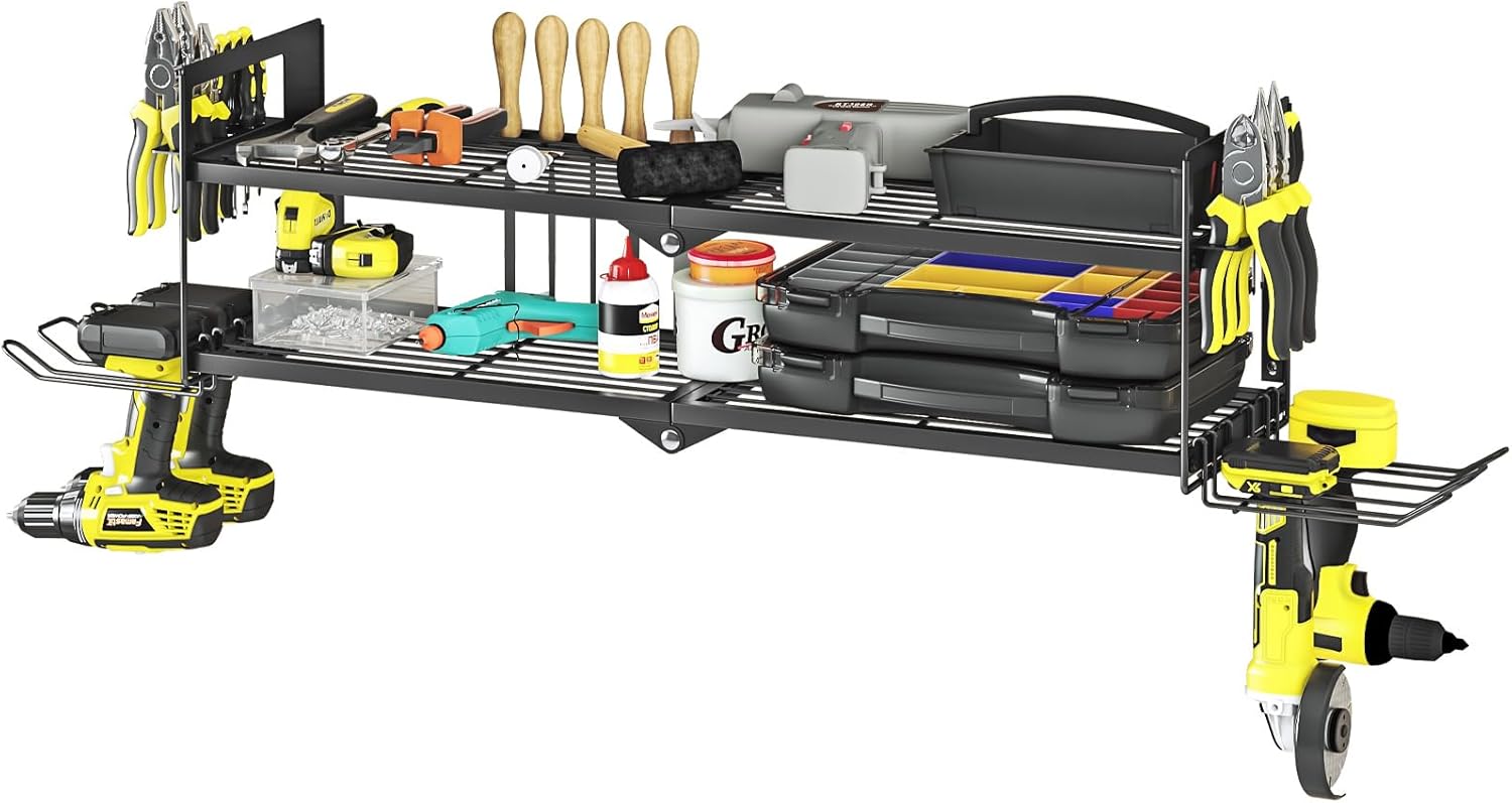 AZERPIAN Heavy Duty Power Tool Organizer Wall Mount for Drill and Cordless Tools Heavy Duty Rack for Garage Organization Workshop Pegboard (2 Layers 4 Slots)