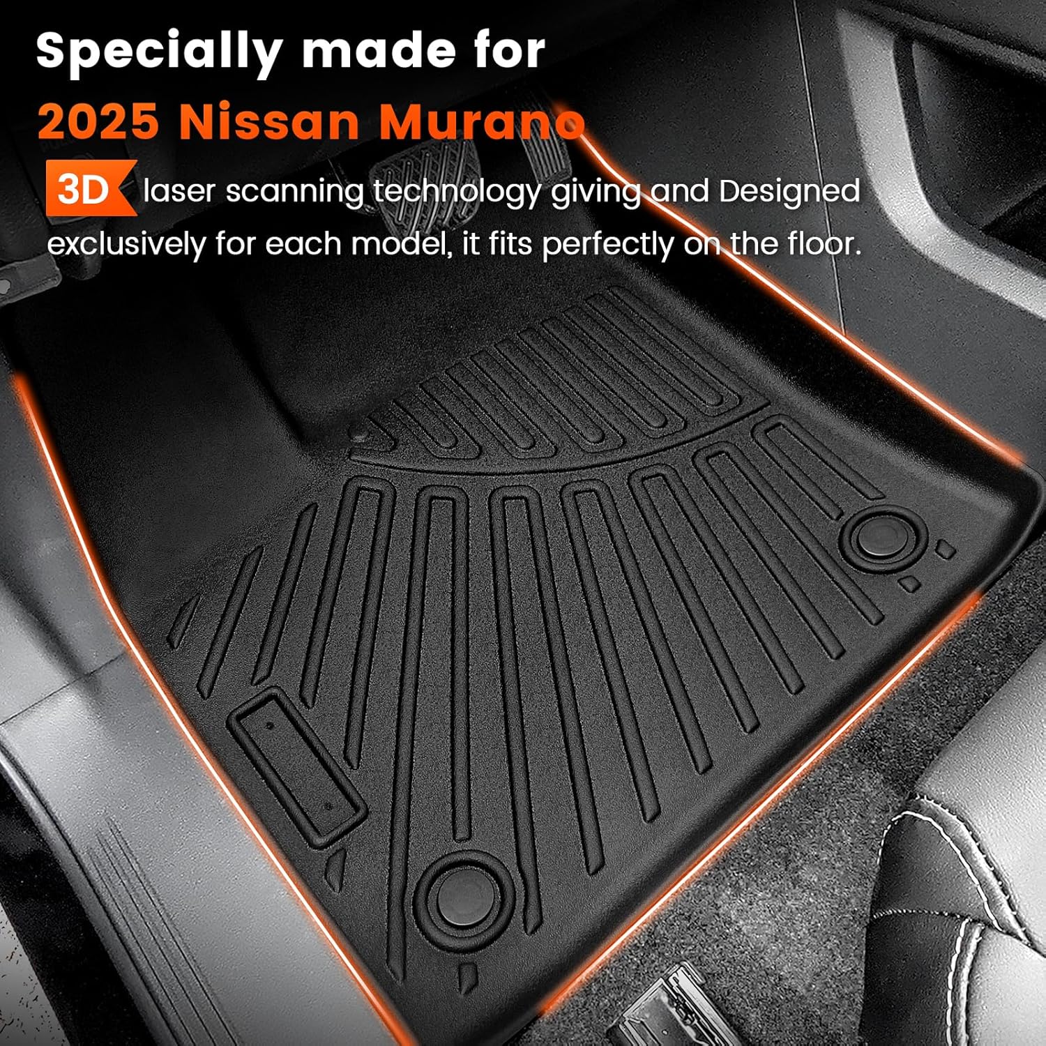 - 【Perfect Custom Fit】 Designed EXCLUSIVELY for Nissan Murano 2025, no trimming needed. 3D laser-measured to cover every contour of your vehicle floor,ready to use Immediately.Note: Remove the original pad during installation.If the mat has creases, just expose it to the sun for an hour or two to smooth it out, or use a hair dryer to heat it up. In cold weather, use hot water to restore it.