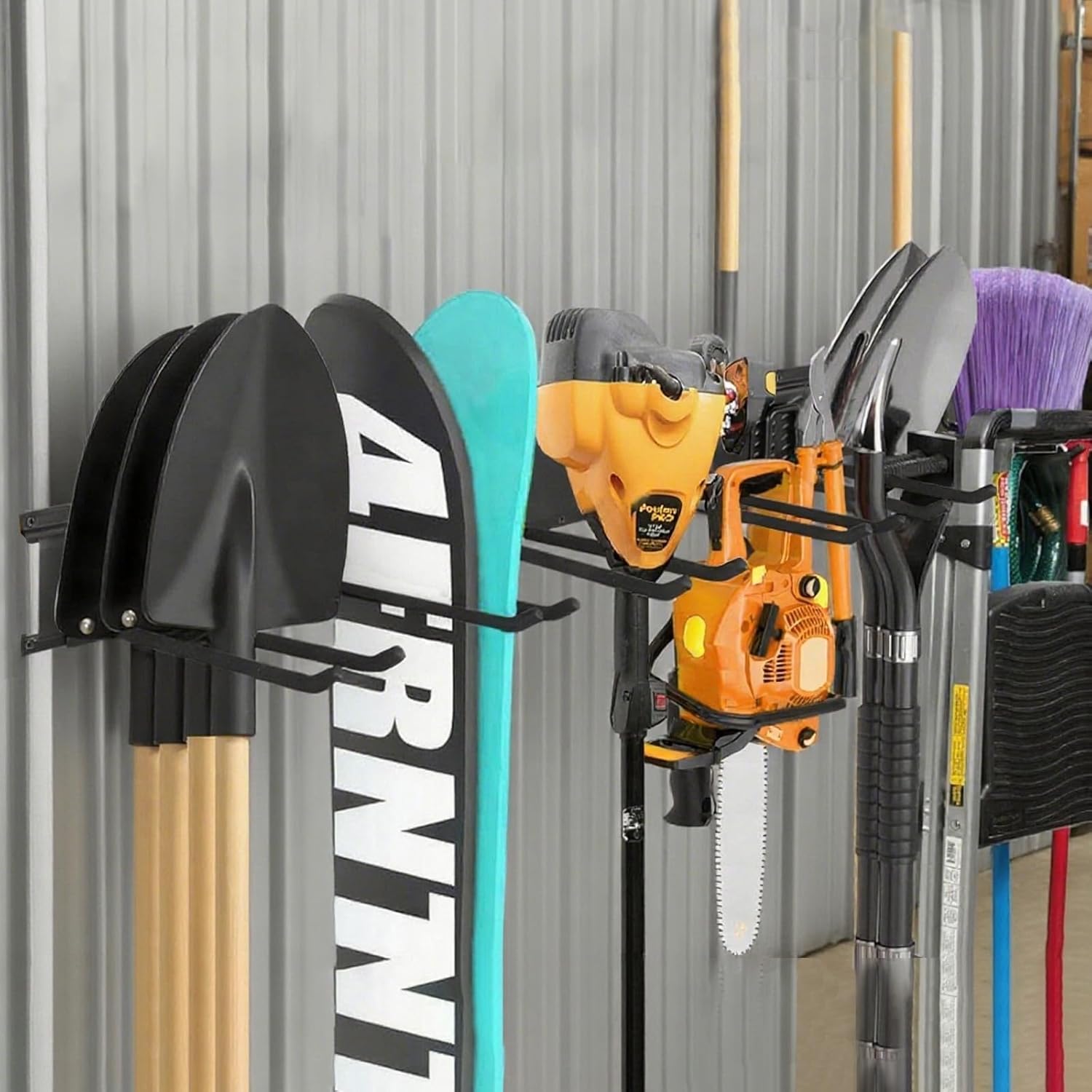 - ADJUSTABLE 48-INCH MODULAR DESIGN:Featuring a 48-inch wall-mounted frame with 3 rails and 6 versatile hooks, this organizer offers fully customizable storage. Hooks slide freely on tracks to fit tools of all sizes—from garden hoses to ski gear—maximizing wall space for easy accessibility.