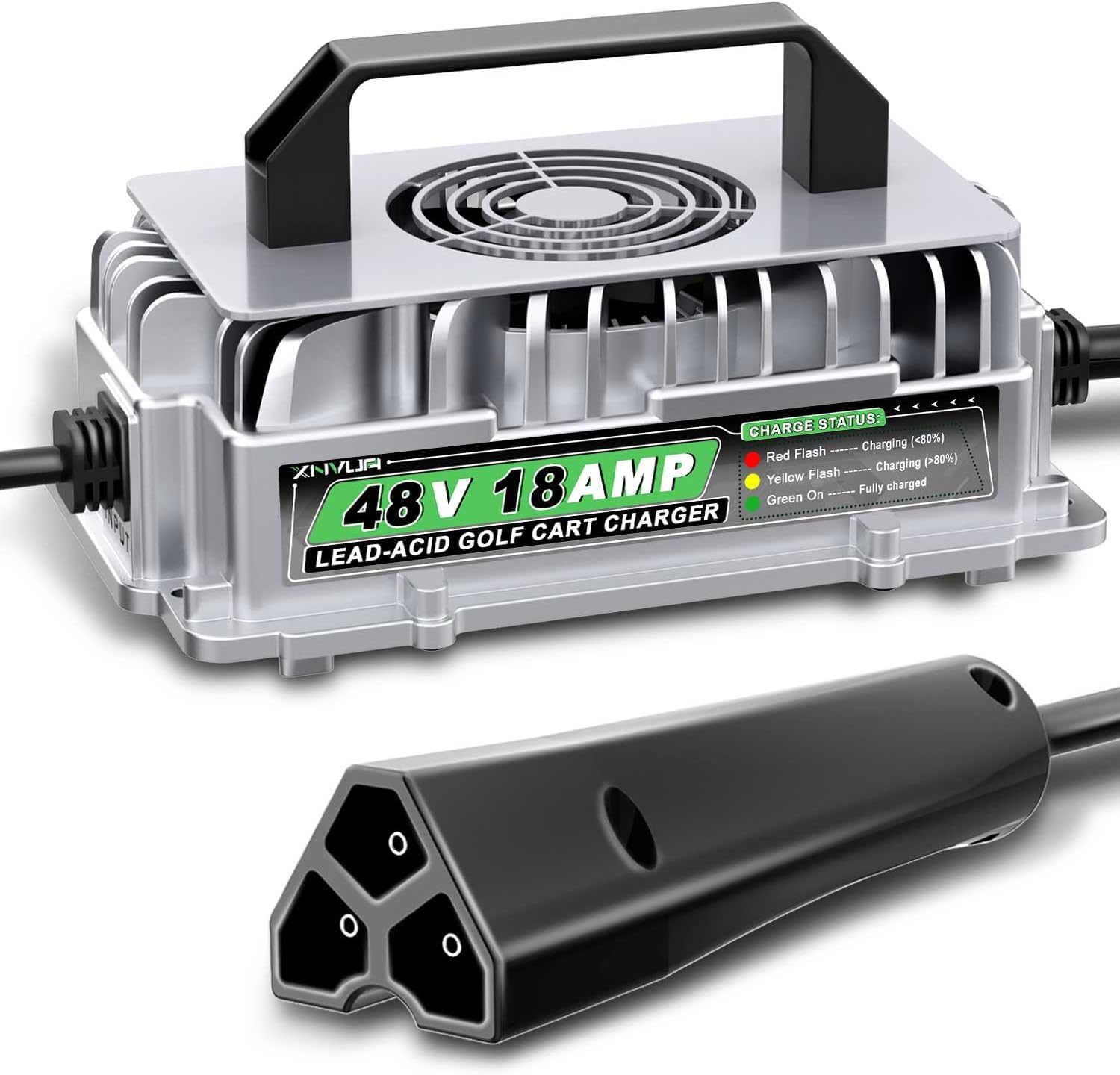 48 Volt 18 AMP Golf Cart Charger for 48 Volt EZGO RXV & TXT with 3 Pin Triangular Plug for 48V Lead Acid Battery