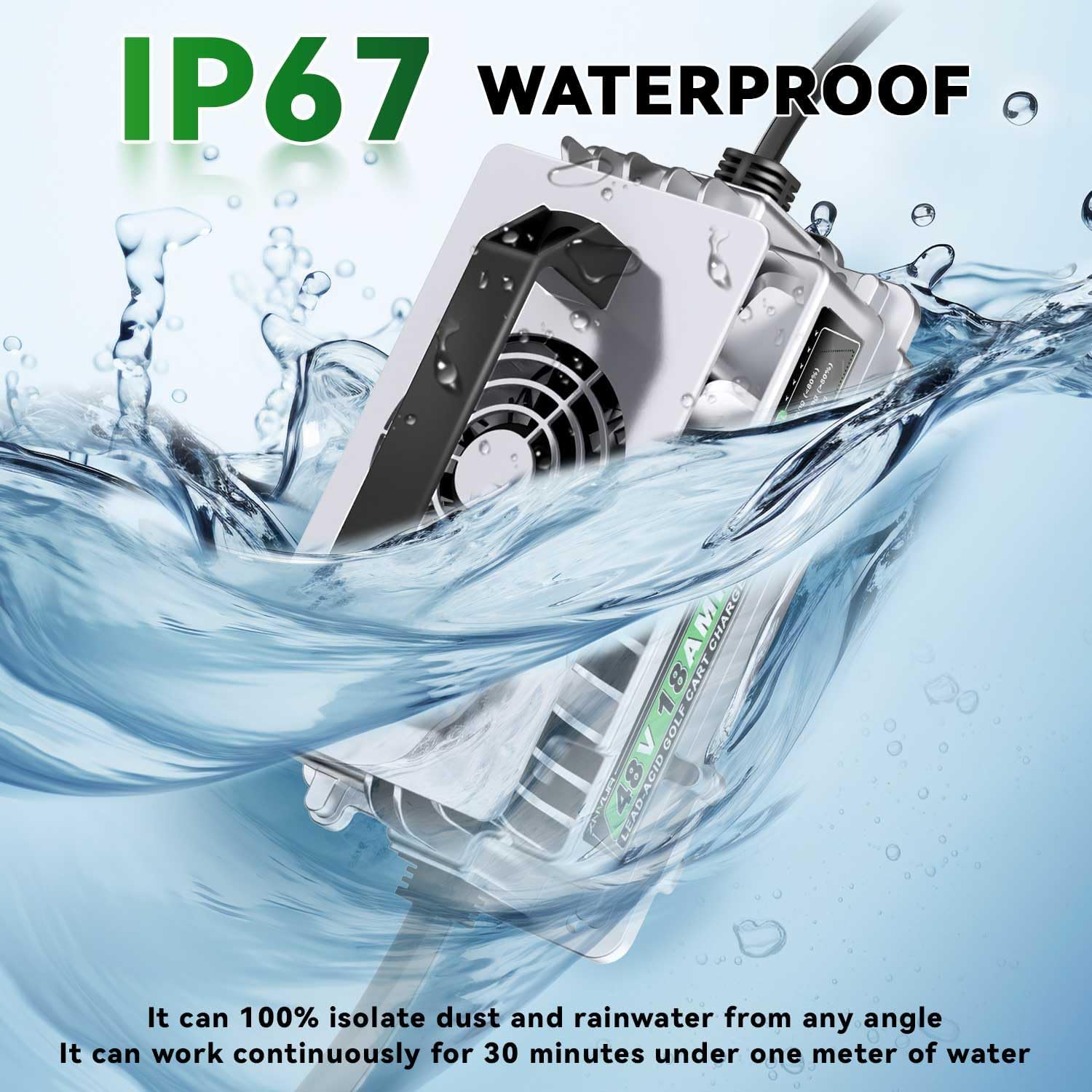 - 【Dust & Waterproof】 Having the IP67 Protection level,this charger can be used in rainy and dusty weather or other inclement weather.