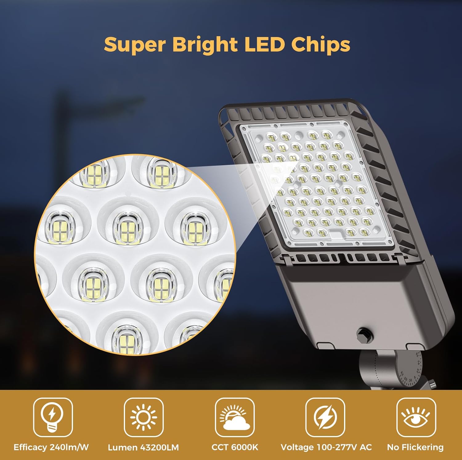 LED Parking lot Lights 180W Dusk to Dawn Photocell Street Lights 6000k Commercial Area Oudoor Lighting IP65 Waterproof for Driverway Yard Garage Warehouse 3 Pack with Wrench
