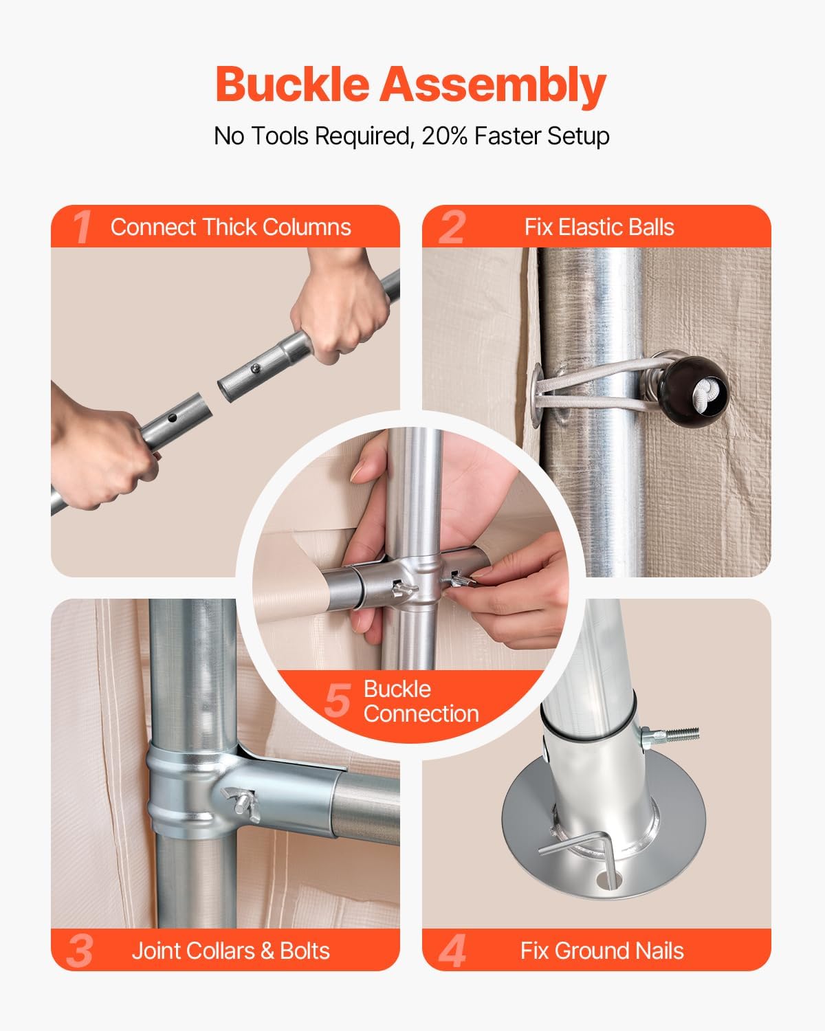 - Buckled Easy Assembly: This outdoor portable storage shelter can be quickly and easily assembled using buckle connectors with T-joints and cross joints, requiring no tools. With detailed assembly instructions, it ensures a fast and straightforward one-on-one connection.