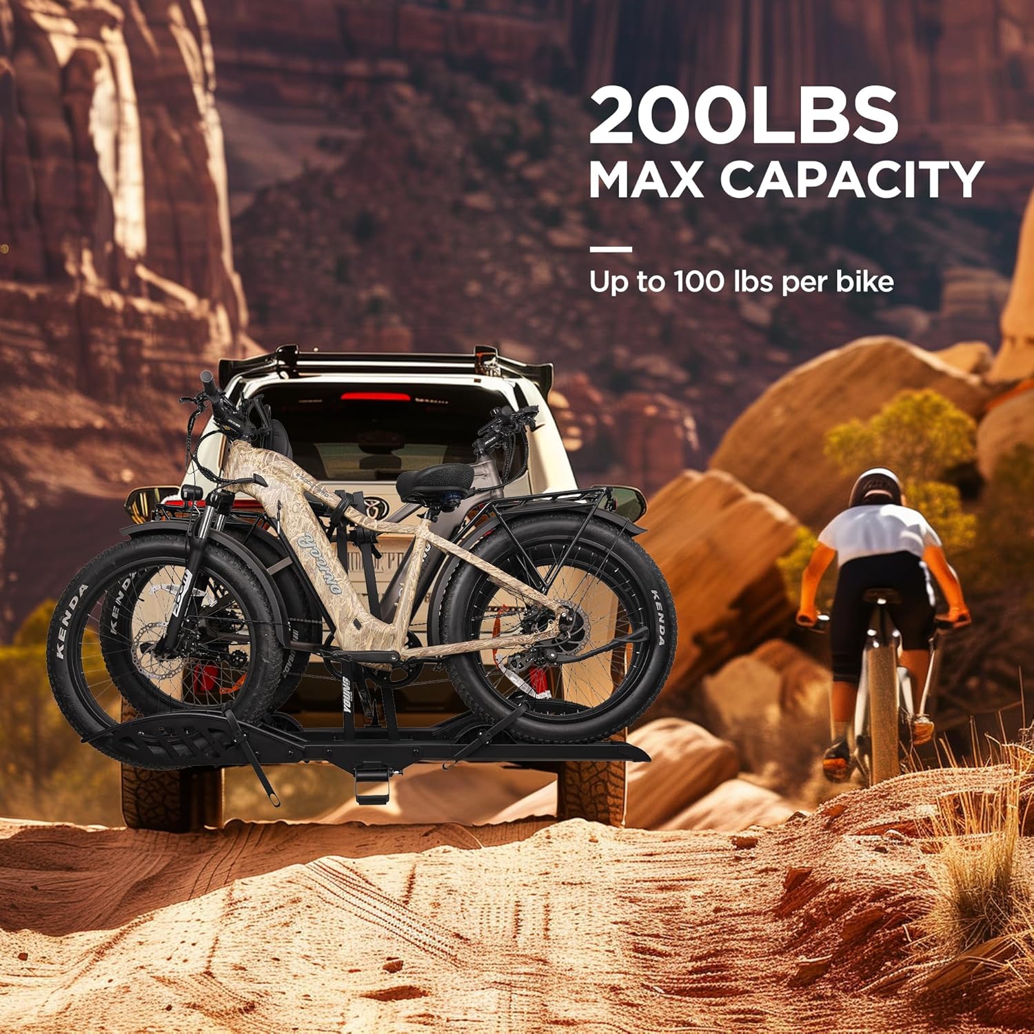 Rockland Foldable 2-Ebike Rack, 200 lbs Capacity, Hitch Mount Electric Bike Rack, Fits up to 5" Fat Tire Width and 50" Wheelbase, Ebike Carrier Rack for 2" Receiver for Cars SUVs Vans RVs