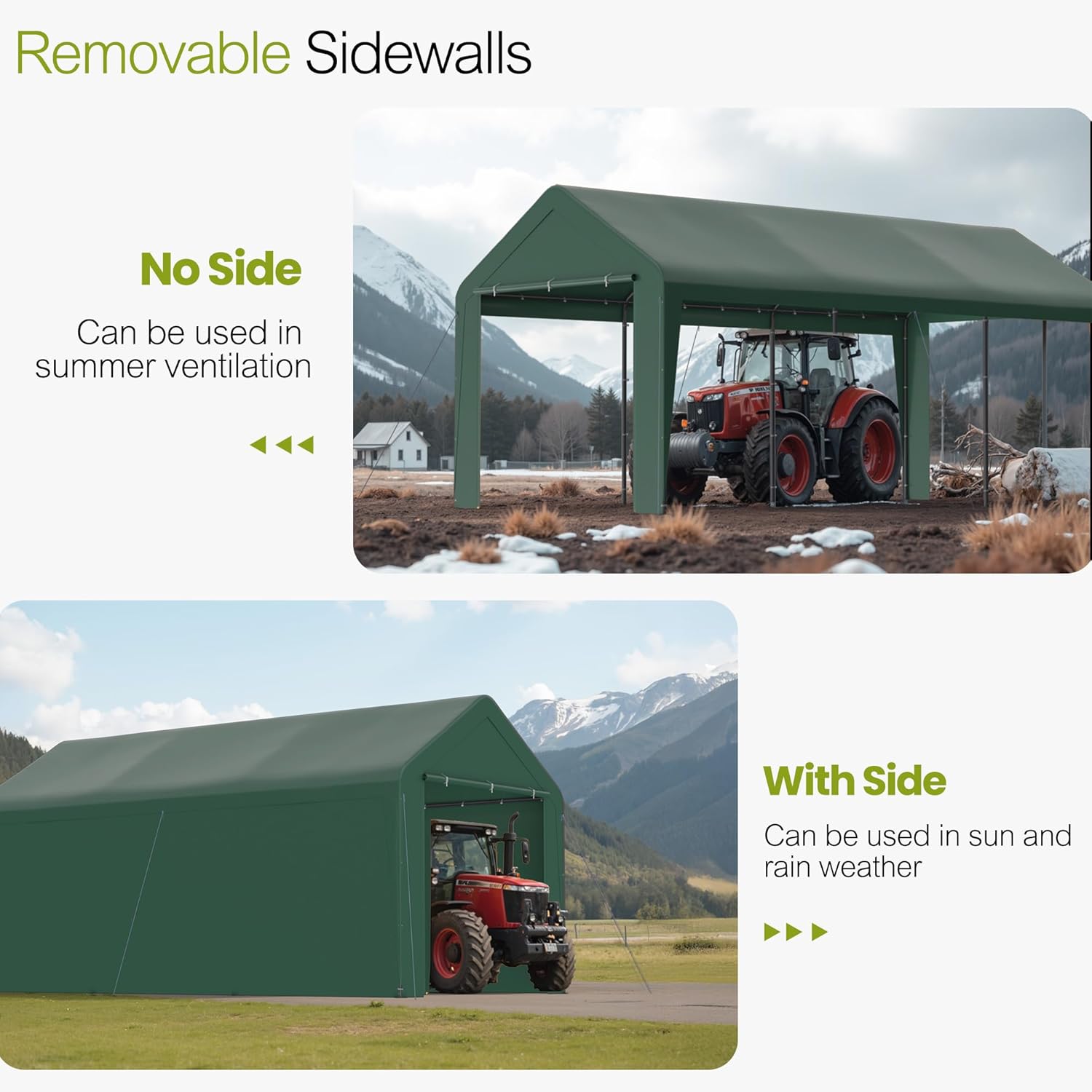 - 【UV & Weatherproof Canopy】This 10x20 carport is made of heat-sealed, triple-layer 200g polyethylene fabric, which is Anti-UV, waterproof, tear-proof, and can protect your car or boats against all four season elements, like sun, wind, rain, dust, hail, and snow.
