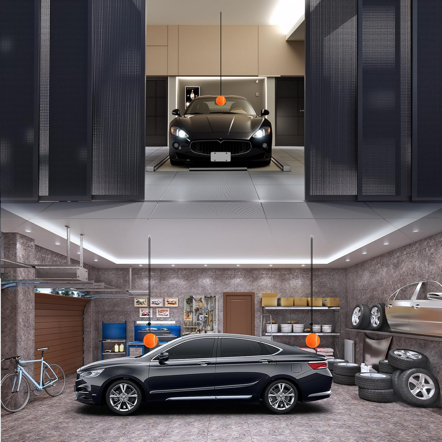 - List of Packages: You will receive 2 garage stopper for parking car, 2 fixing screws and 2 spring clips, this set of accessories will help you to install it on the ceiling easily and is small and lightweight for easy storage and carrying