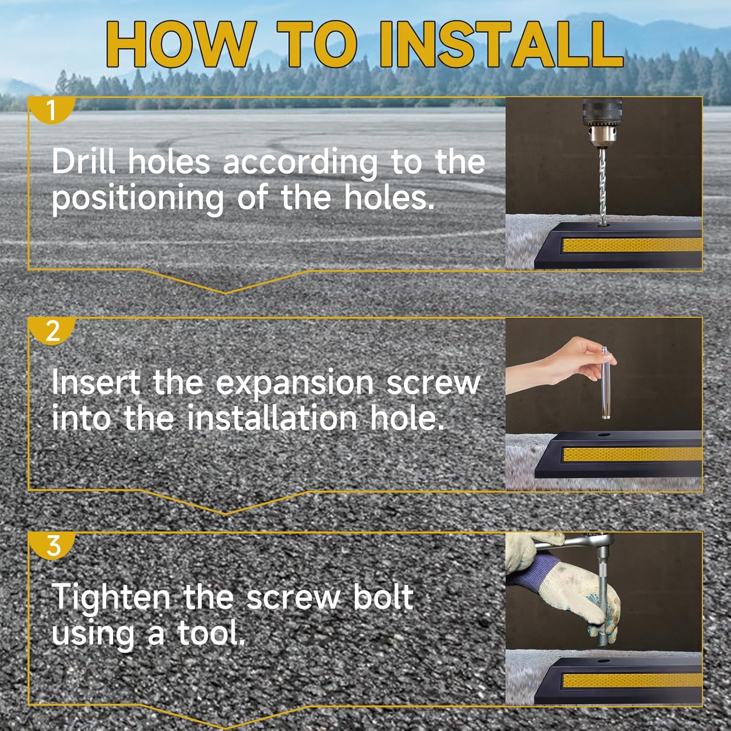 - Easy Installation with Free Accessories: The package includes 4 expansion screws for convenient and secure installation. No heavy equipment is needed—simply position the block, drill holes, and fix it in place. It can be easily installed on asphalt, concrete, or other hard surfaces, saving you time and effort.