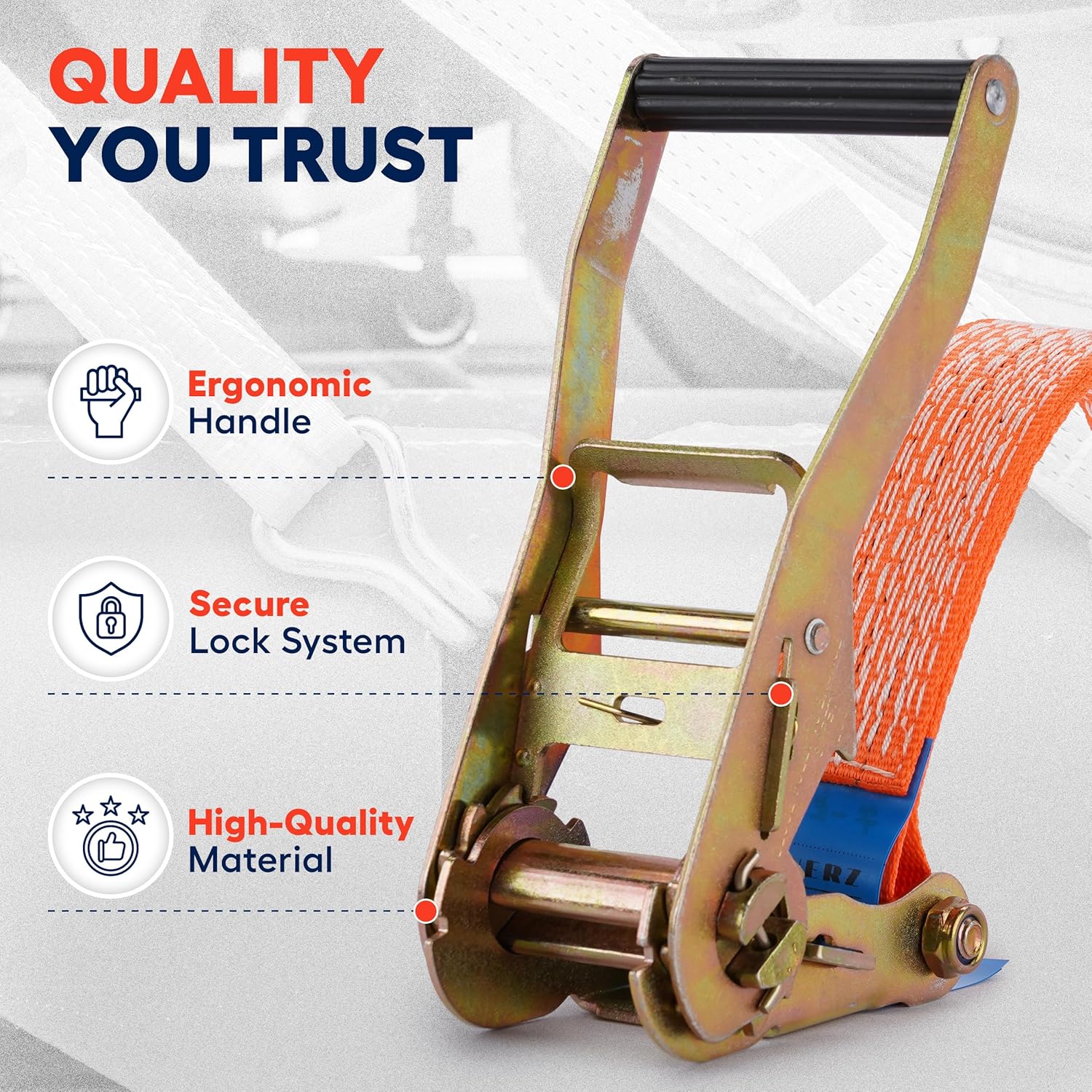 Heavy Duty Ratchet Straps 2" x 14' - 6600 Lb Breaking Strength Tie Down Straps with Double J Hooks for Trucks and Trailers