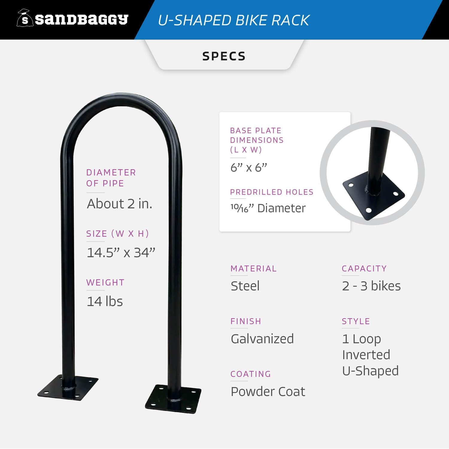 Sandbaggy U Shaped Bike Rack - Outdoor, Commercial - Galvanized Steel - Surface/Ground Mounted (1, Gray)