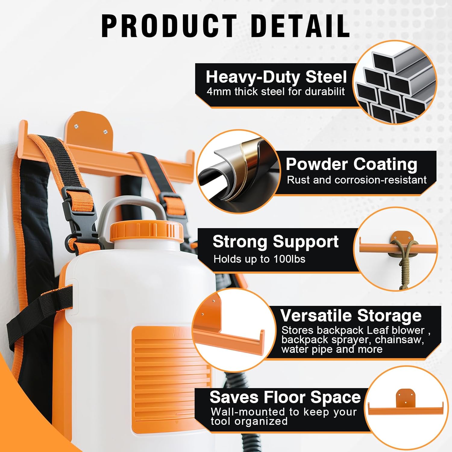 Backpack Leaf Blower Hanger, Backpack Sprayer Wall Mount, Lawn Care Accessories, Garage Storage, Weed Eater Hanger Garage Organization Storage, 2 Pack