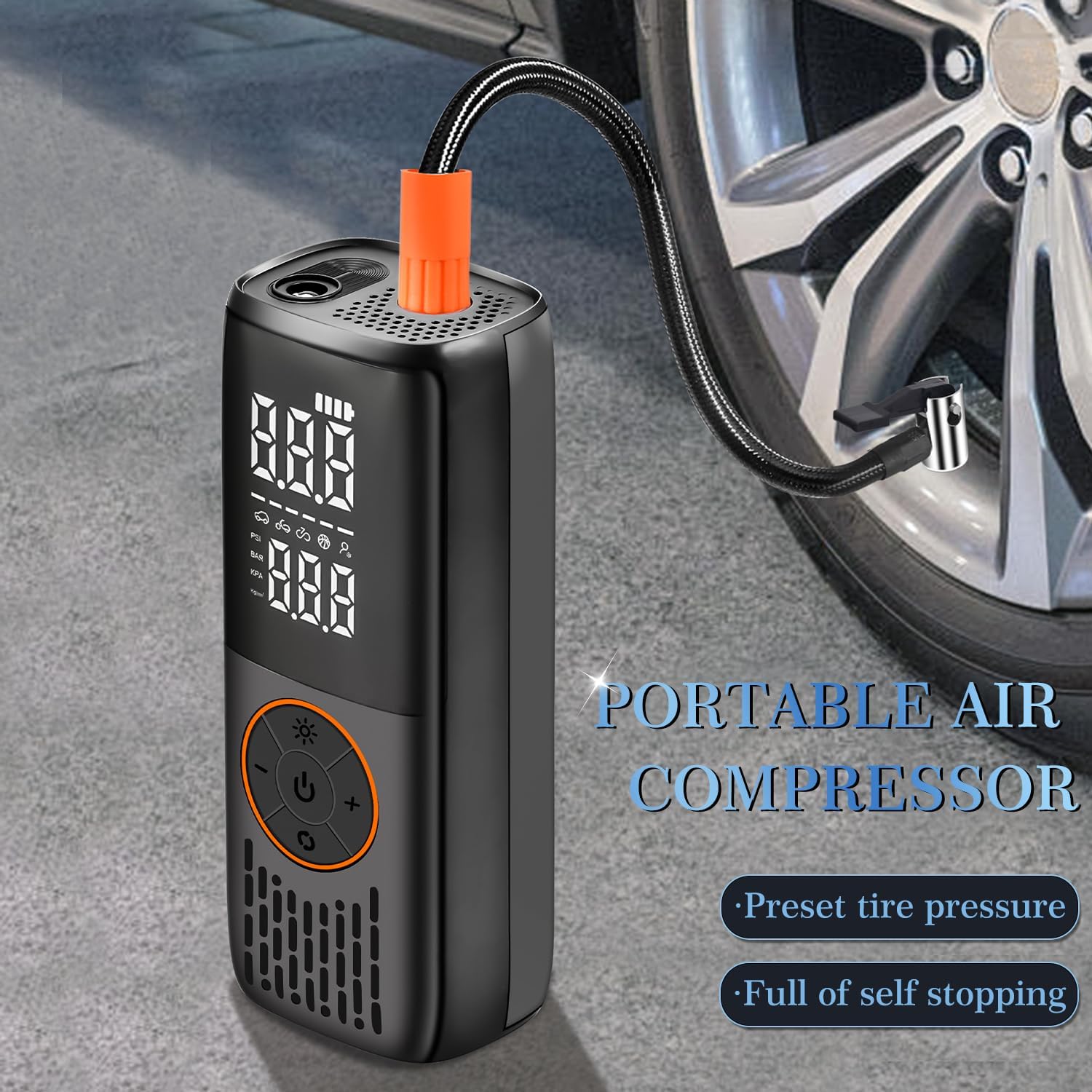 - 【Portable Air Compressor】Experience inflation speeds 3X faster than traditional pumps, with an impressive 35% improvement in efficiency—perfect for quickly completing tasks. With a powerful 150 PSI max pressure, this portable air compressor effortlessly handles the inflation needs of car tires, bicycles, motorcycles, sports balls, and more. Enjoy enhanced safety, driving comfort, and peace of mind on the road or at home.