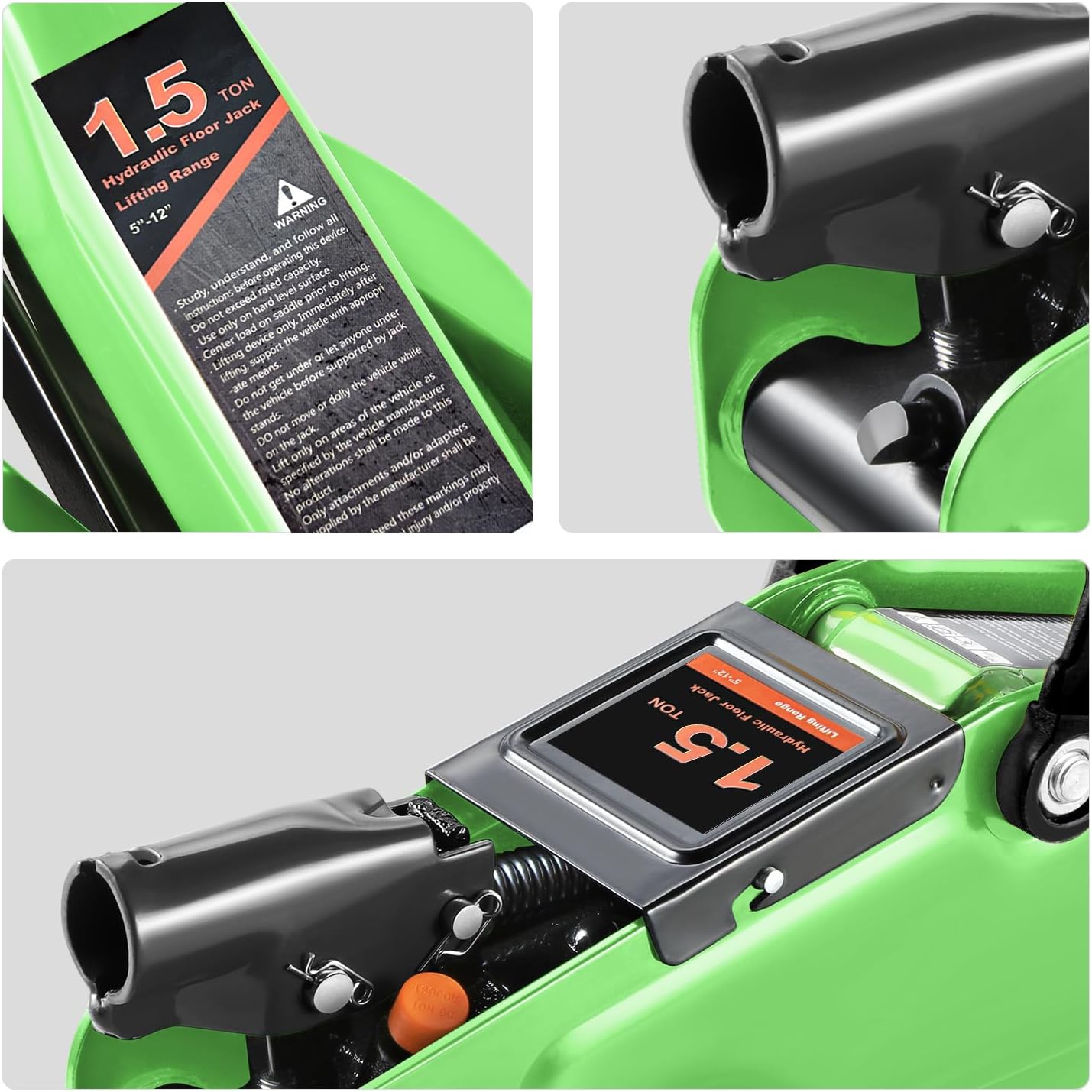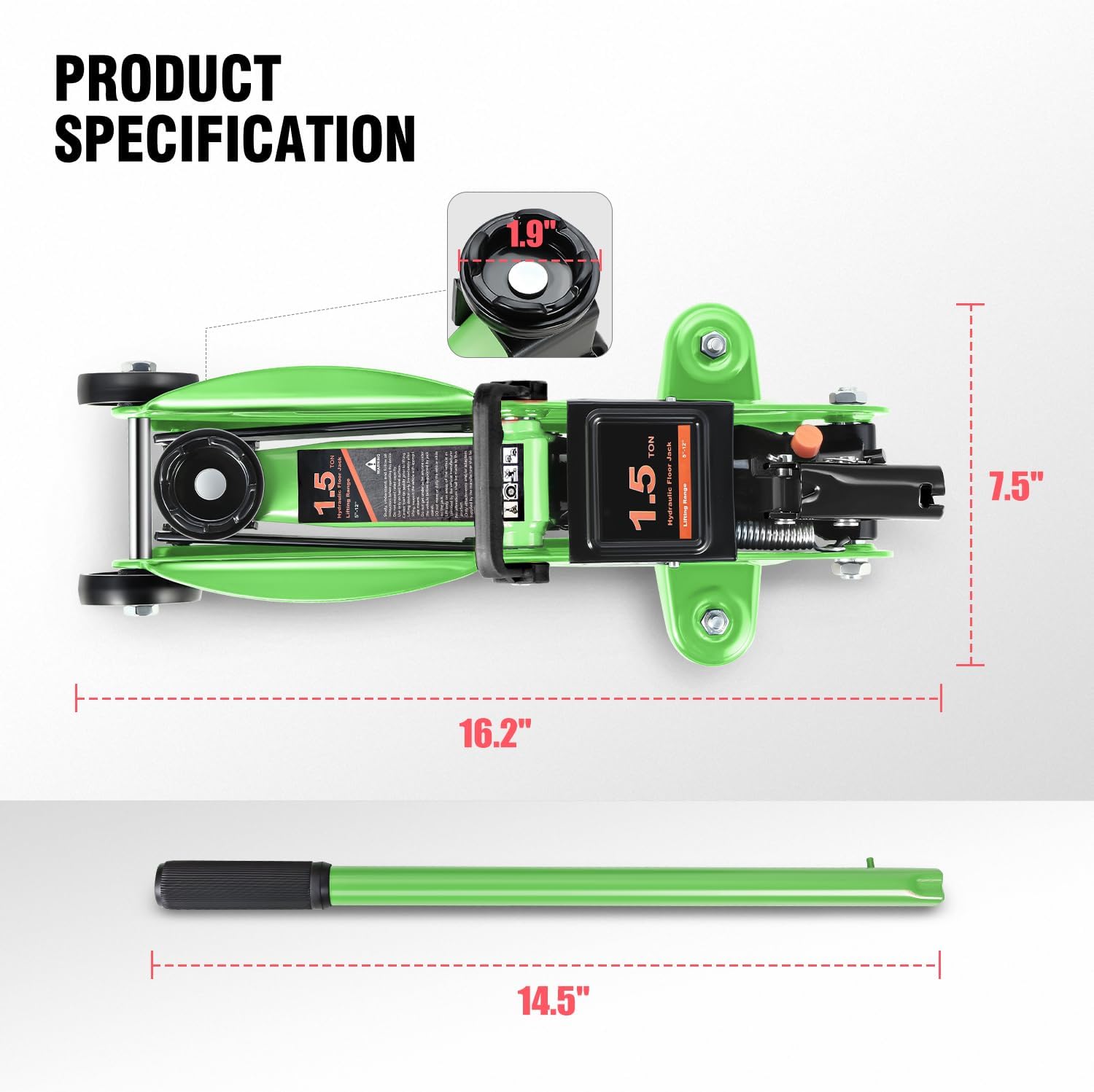DNA MOTORING Low Profile Hydraulic Trolley Service/Floor Jack, 1.5 Ton (3000 lbs) Capacity, Lifting Range 5.3"-12", Green, TOOLS-00326-GR