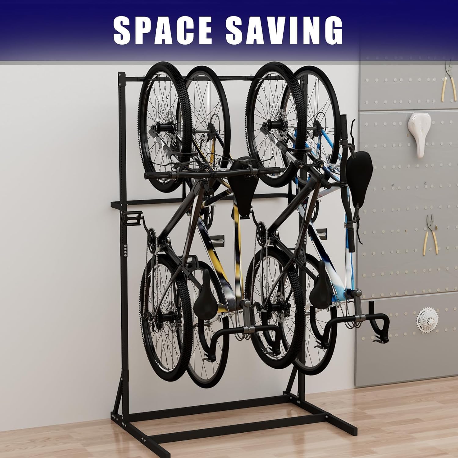 - [Quick Setup] Comes complete with all mounting hardware and clear assembly instructions for tool-free installation. The freestanding design requires no wall drilling—just unfold, adjust, and load bikes within minutes.