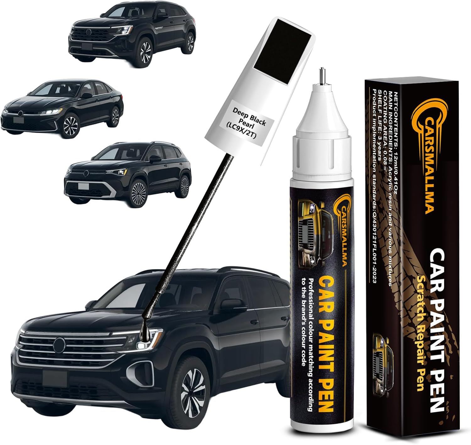 - Exact Color Match: Carsmallma car touch up paint(LC9X/2T Deep Black Pearl) is expertly formulated for Volkswagen vehicles, including All Models. The automotive paint is meticulously crafted and rigorous testing to match the original factory finish, making scratches, chips and peeling paint hardly noticeable. Whether on bumpers or body surface, it delivers a perfect finish