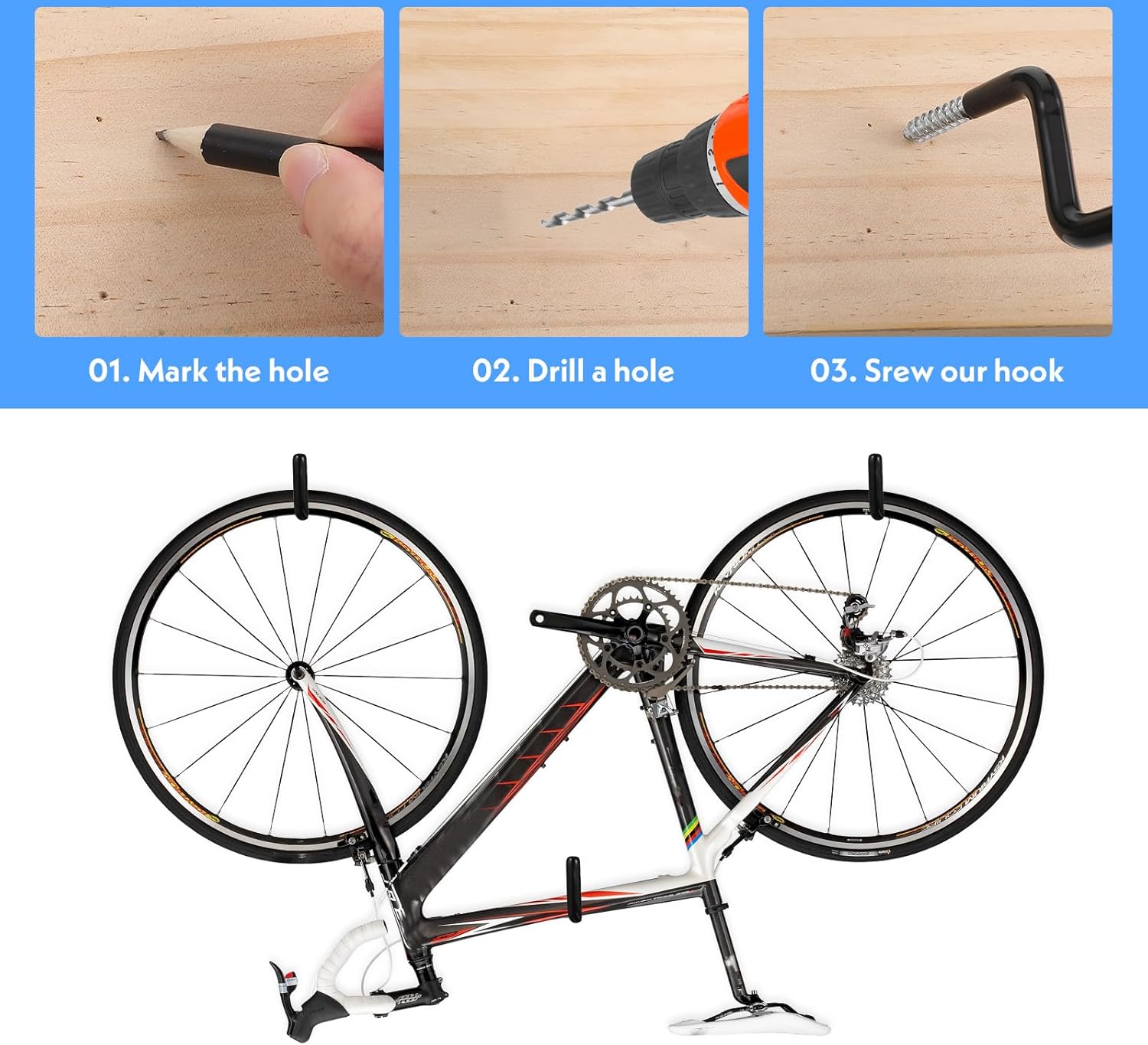 - 【Heavy-Duty Strength】Made from robust iron with a durable PVC coating, each hook supports up to 75 lbs, ensuring reliable storage for bikes, ladders, tools, and more.