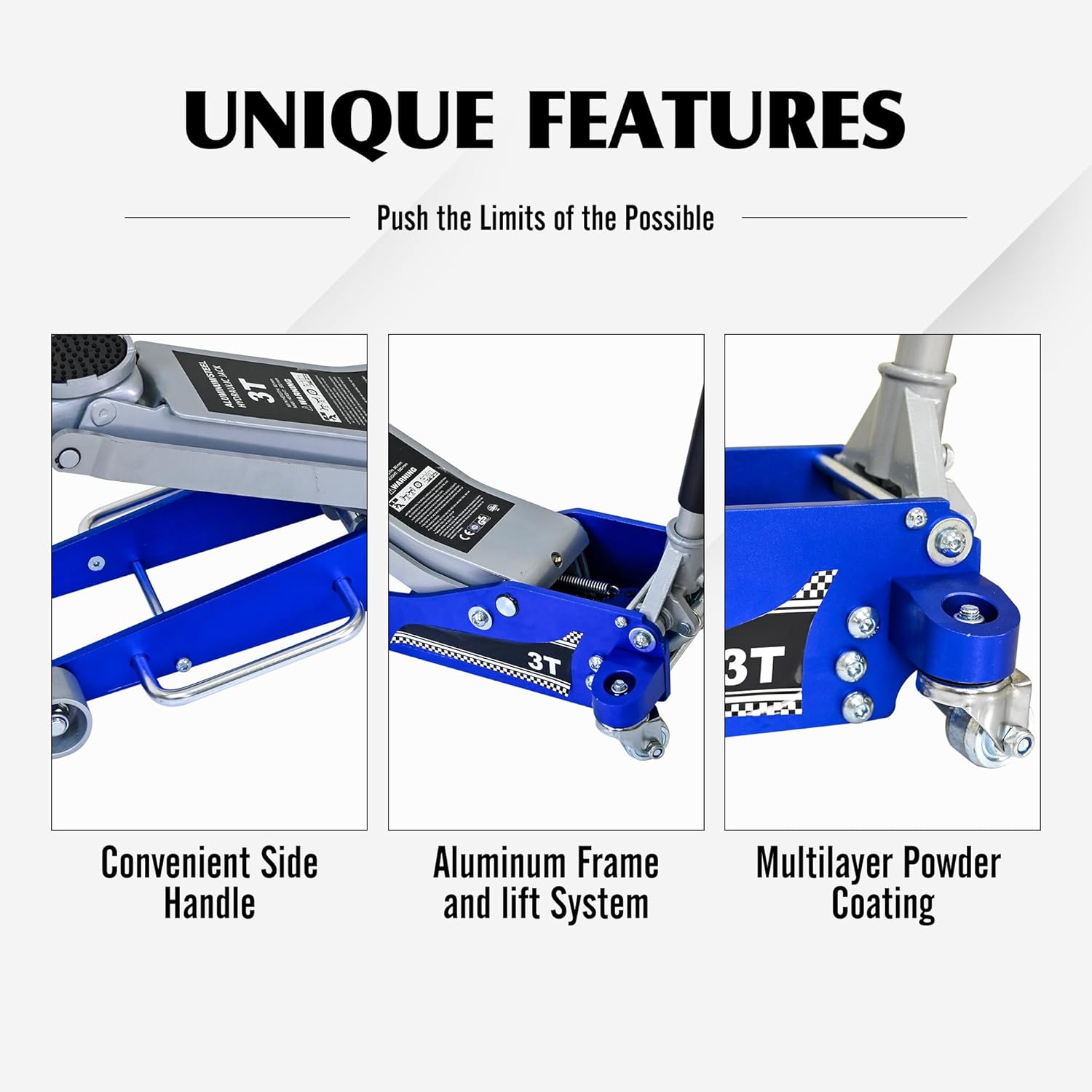 - 【Safety Overload System】:Built with a safety overload system, this floor jack prevents overloading by limiting use beyond the specified load capacity, ensuring safe operation during use.The excellent sealing system ensures your security and long-term use.