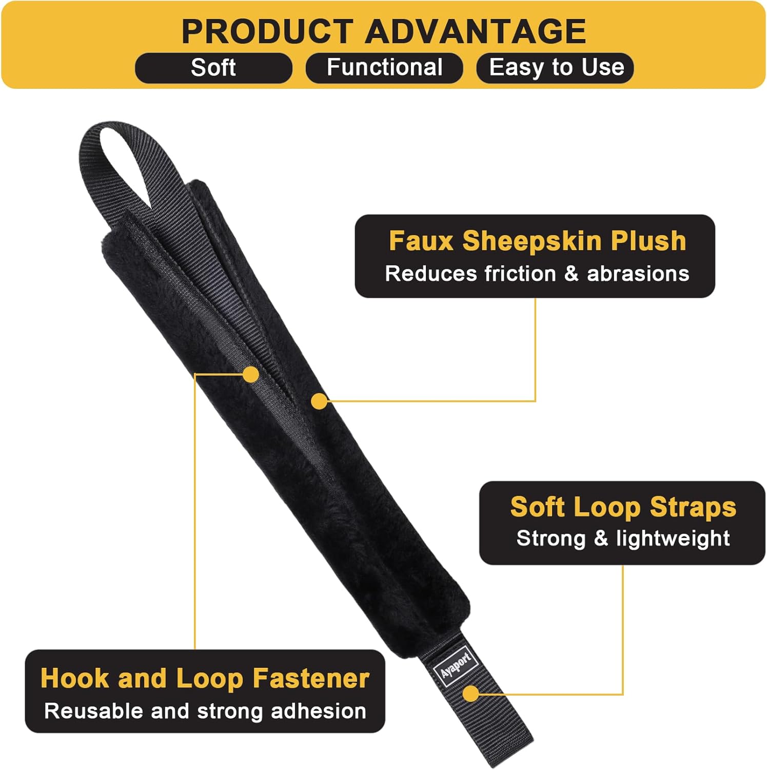 - USAGE INSTRUCTIONS: Ayaport soft tie cover set are very easy to use by creating a slipknot or loop with any ratchet straps(As shown in the attached figure); These plush cover can be used to cover not only soft loop straps, but also other multiple straps, such as ratchet straps, cam buckle straps etc.