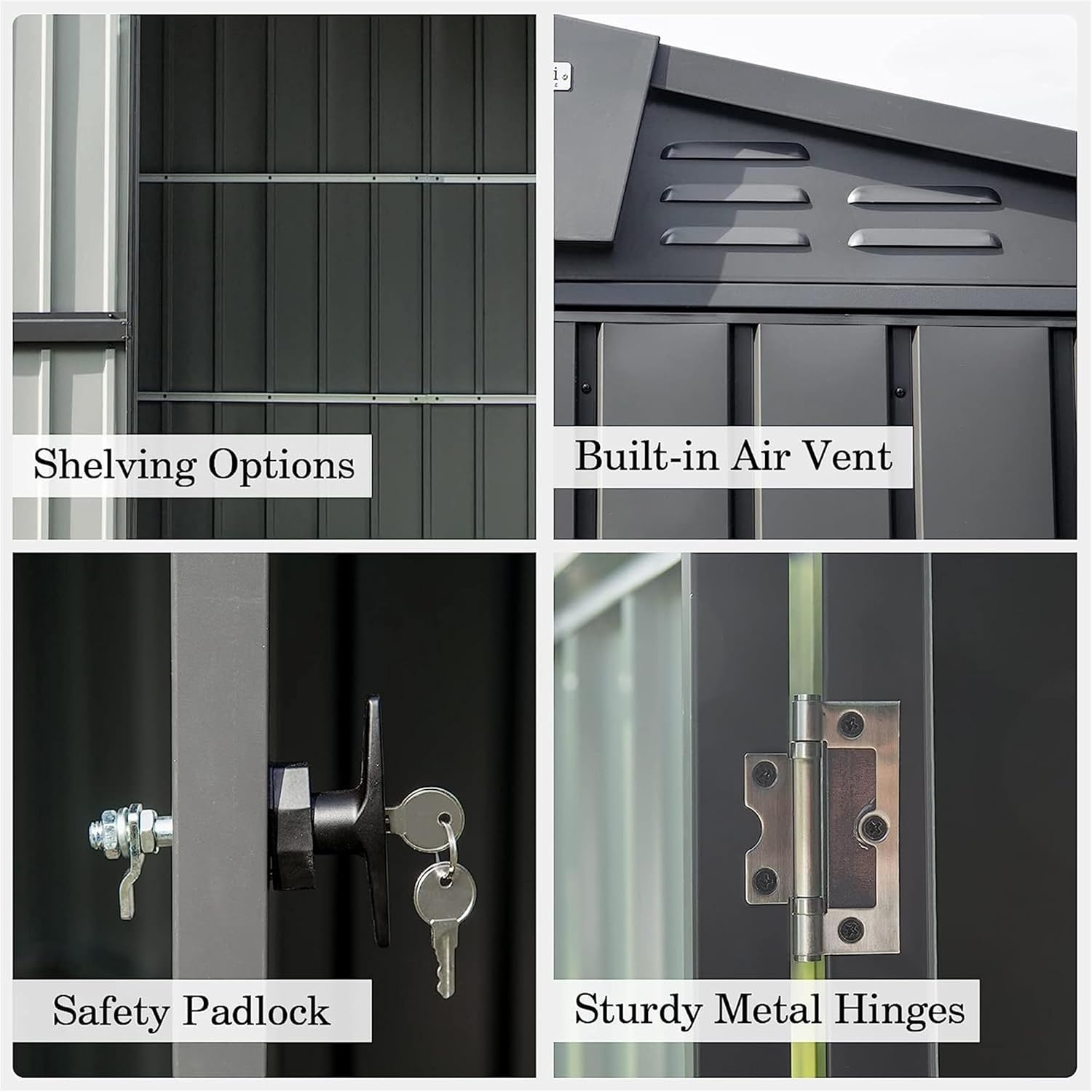 IKERY Galvanized Steel Storage Shed - 10' x 8' with Lockable Door, Extra - Large Metal Garden Shed for Bikes, Tools and Trash Cans, Perfect for Backyard and Patio, Dark Gray