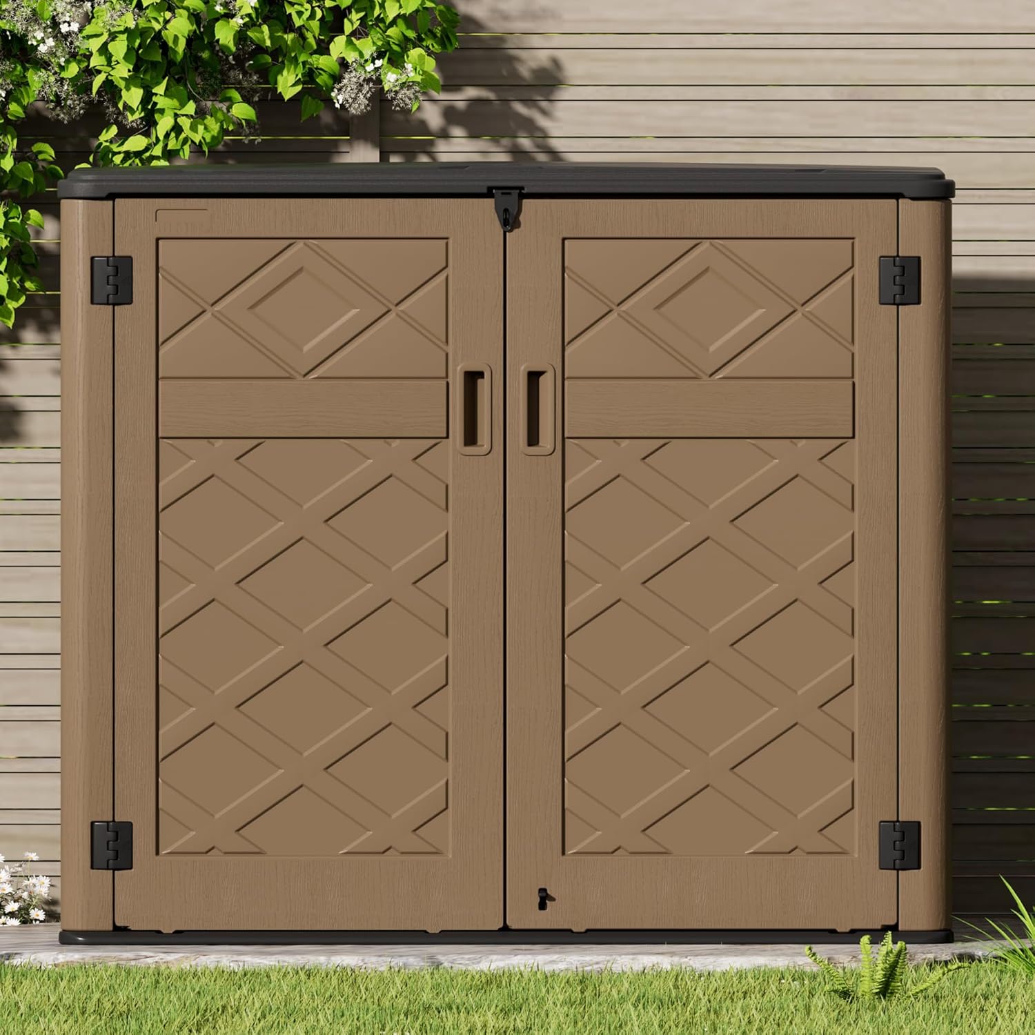 Resin Outdoor Storage Shed, Outdoor Storage Box Waterproof for Garden Tools, Patio Furniture, Trash Cans, Garage Storage, Lockable