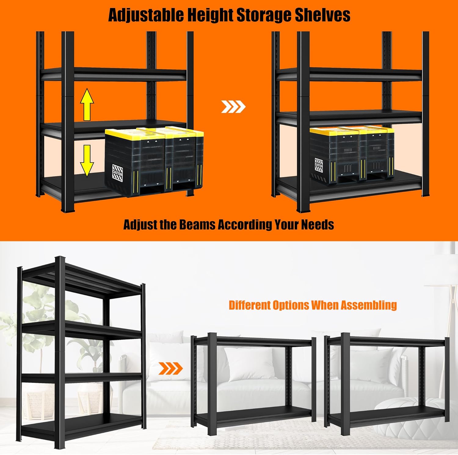 40in Wide Garage Shelving Heavy Duty,2000lbs Large Loads Adjustable Garage Storage Shelves,All Metal Storage Racks and Utility Rack Shelves, 40”W x 16”D x 72”H (Black)