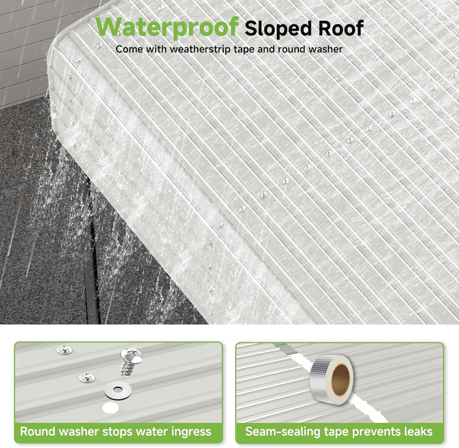 - Galvanized Steel Roof: The roof is made of galvanized steel with UV-resistant properties, helping to protect your vehicles and equipment from sun damage, while keeping the interior cooler during hot summer months.