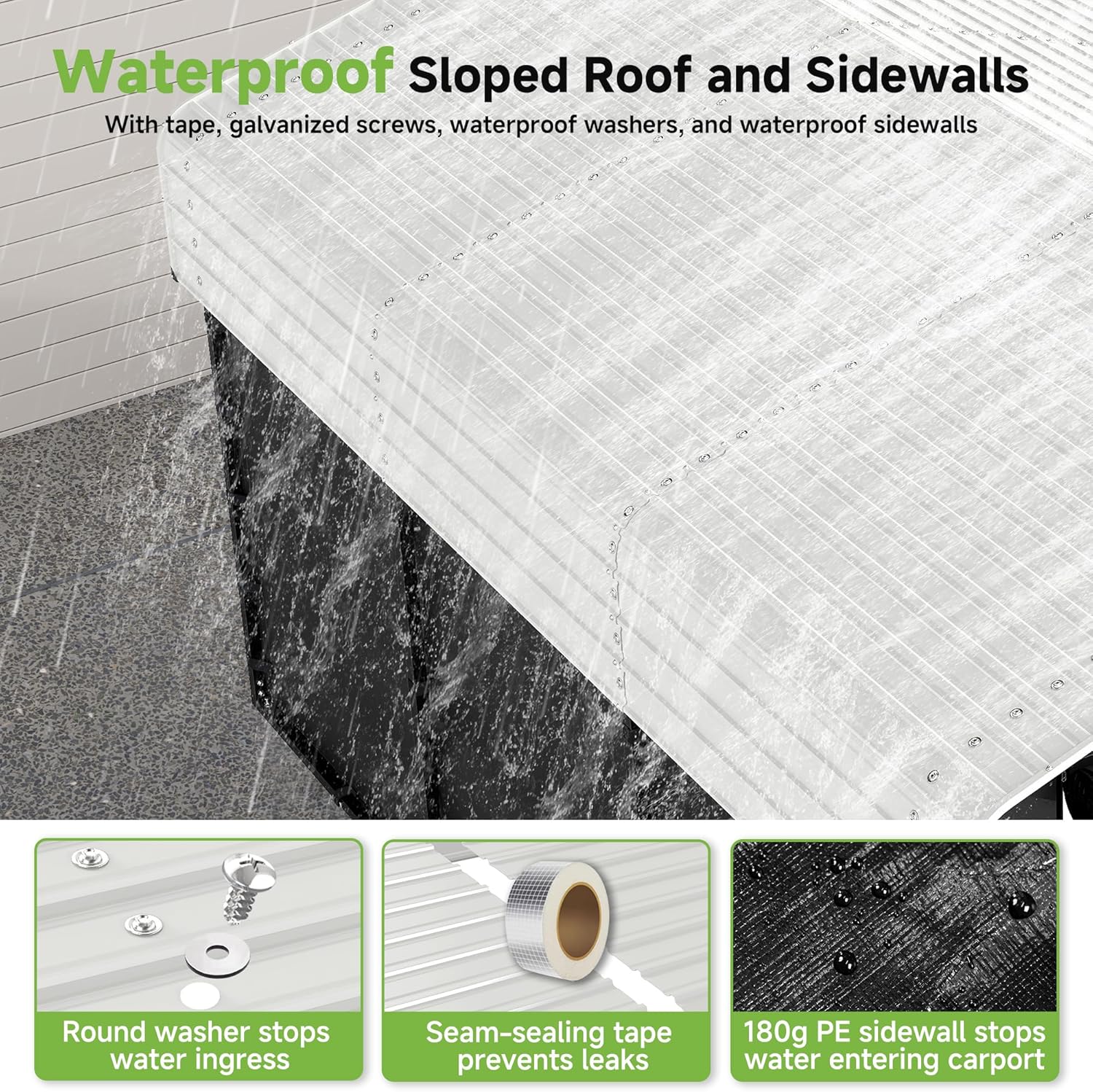 - 180g PE Removable Sidewalls: Wear-resistant and tear-resistant, offering excellent waterproof and dustproof performance, stand up to rain and snow, quick to install, remove and easy clean, all-weather protection for your carport