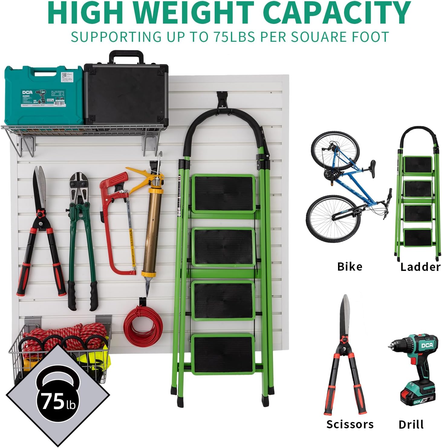 - MAKE FULL USE OF YOUR SPACE: Unleash the true potential of your garage wall organizer for tools with the garage slat wall panel. By making smart use of vertical wall space, you can revolutionize your garage into a seamlessly organized and efficient area. Bid farewell to a messy garage and welcome a meticulously optimized space that maximizes every inch available. Enjoy effortless access to your tools, equipment, and accessories, all while crafting a visually captivating environment.