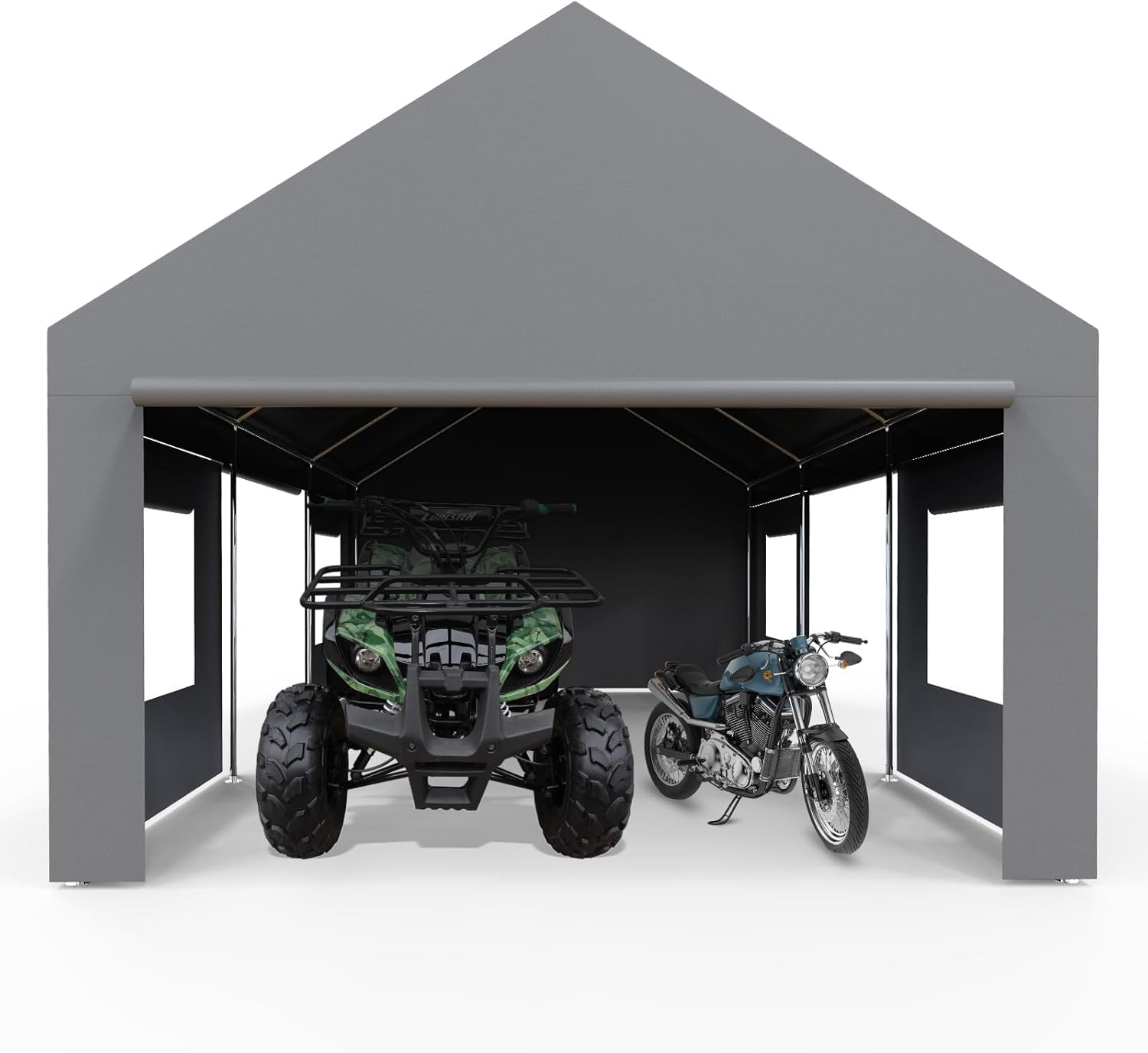 - ROLL-UP MESH WINDOWS: Zip-controlled mesh windows on this oversized portable garage carport roll up/down instantly! Enjoy light, breeze, and 100% mosquito-proof comfort during BBQs or gatherings