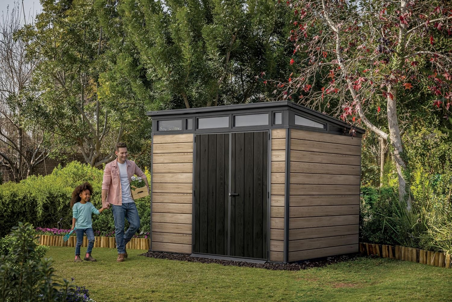 - Premium construction in stunning wood-look finishes, delivers style and beauty your outdoor storage.