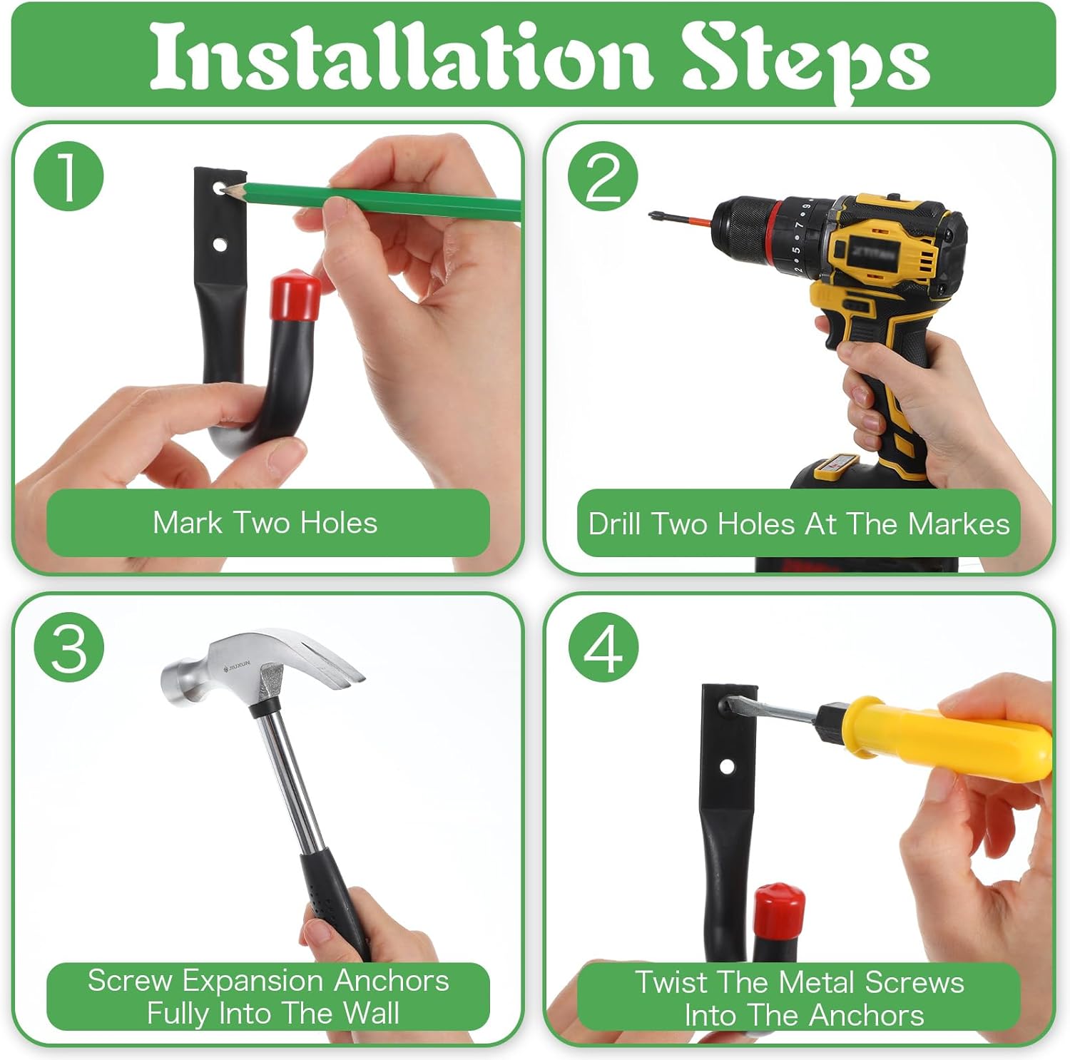 - 【Versatile Storage Solution】 Ideal as a kayak storage rack, bike hanger, ladder holder, or for organizing chairs, garden tools, or sports equipment. These black garage storage hooks maximize vertical space in garages, sheds, utility rooms, or basements, reducing clutter and protecting items from floor damage