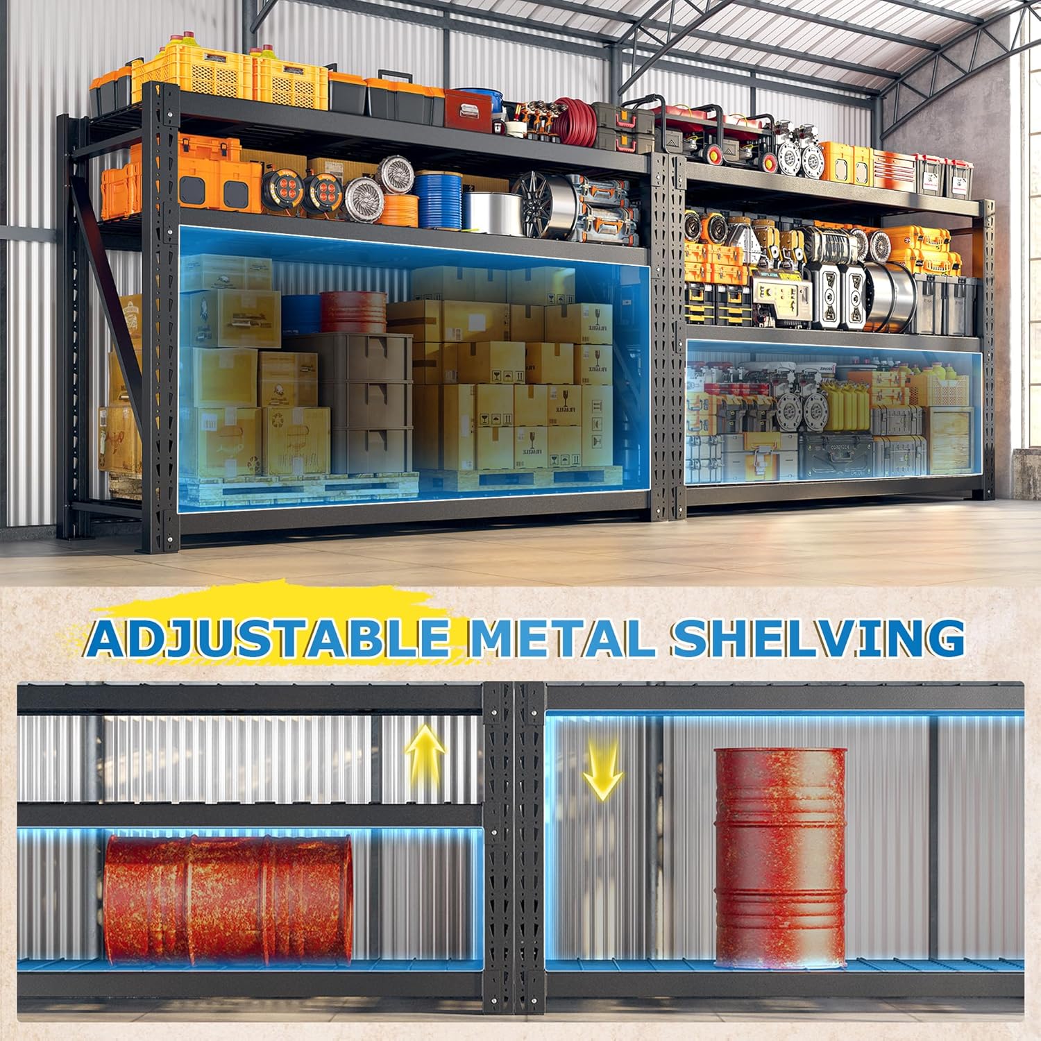 - Industrial-Strength Garage Shelving: 2,750 lbs/shelf (8,250 lbs total) capacity. Reinforced steel beams & seamless columns support machinery/auto parts. Storage shelving joint-free design ensures stability under heavy loads—equivalent to 2+ vehicles. Professional-grade durability.