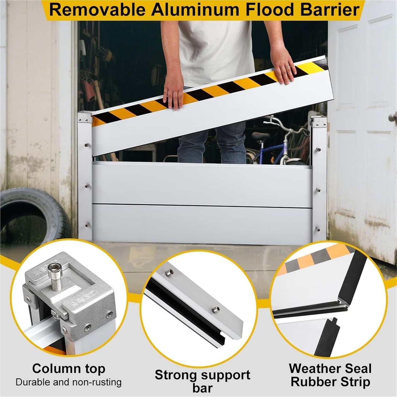 - ☀ Aluminum Alloy Flood Barriers for Home: The Flood Protection Barrier is made of heavy-duty, 4cm (1.5 inch) thickened aluminum panels and aluminum columns, with an oxidized surface for added durability. Surrounded by IPX6-rated ABS rubber strips, it provides reliable partitioning and flood protection, preventing damage caused by severe weather both indoors and in dry areas