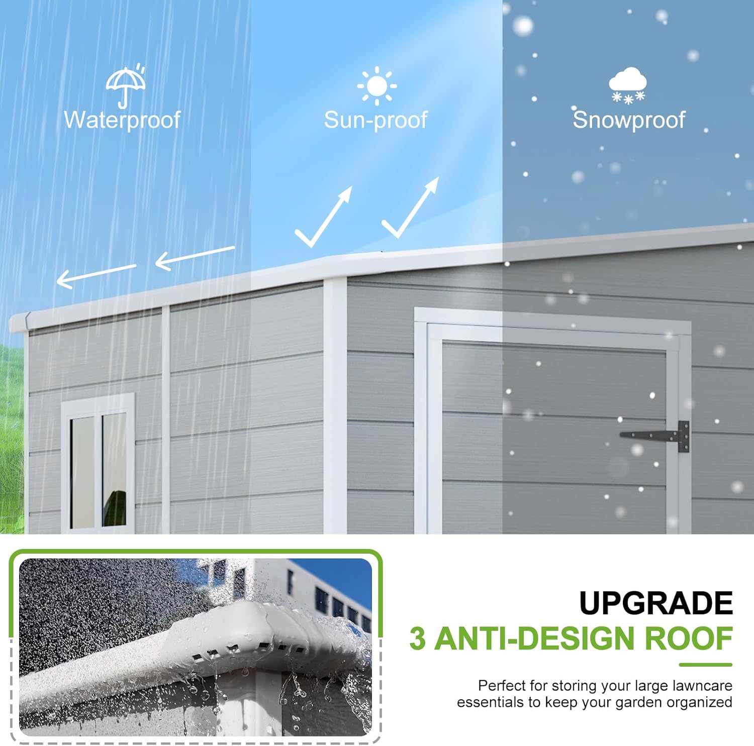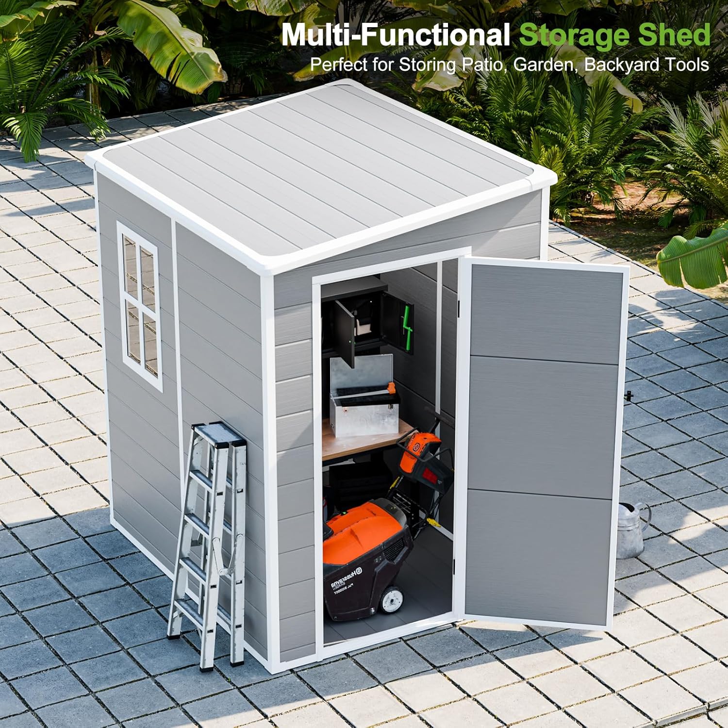 - 🏠PREMIUM RESIN MATERIALS:Our durable storage shed is crafted with 12MM premium polypropylene resin plastic, which is thicker than others in the market. Resin shed is waterproof, rustproof and UV-resistant, less bending and puncturing, worry-free for use in all weather conditions. It is a great shed house for your backyard, patio and garden.