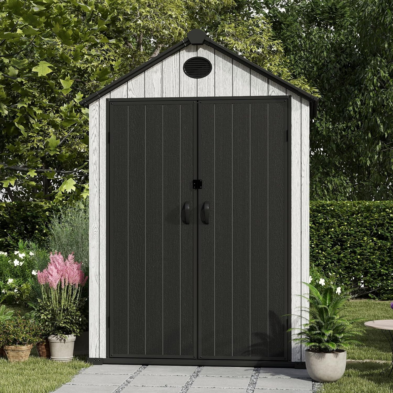 - Compact Footprint, Generous Height, This resin shed measures 5.3 x 3.4 FT with a tall 7 FT roof, providing ample vertical space to stand, move around, and store long-handled tools or shelving units.