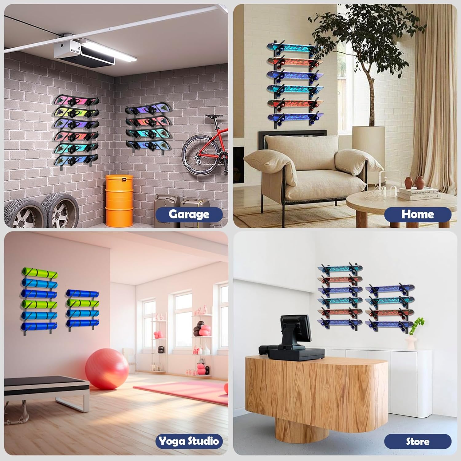 - [Applicable Scenarios]: The skateboard wall hanger is ideal for skateboard stores as a display to attract customers and showcase various styles. It also works for homes, skate clubs, etc., to store personal or group skate gear.