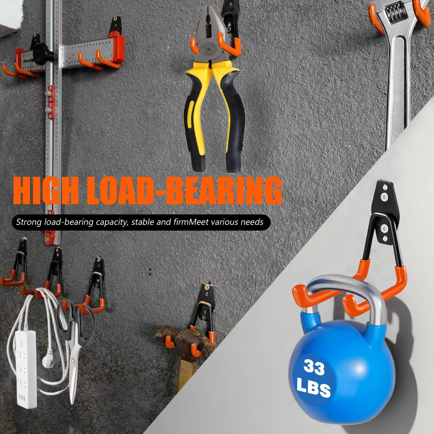 - [High-Capacity Storage & Multi-Function] Engineered for multi-purpose use, these heavy-duty garage hooks easily handle ladders, bikes, garden tools, and other bulky equipment. With their high weight capacity and double-hook design, they maximize vertical space and help create an organized garage system that reduces clutter.