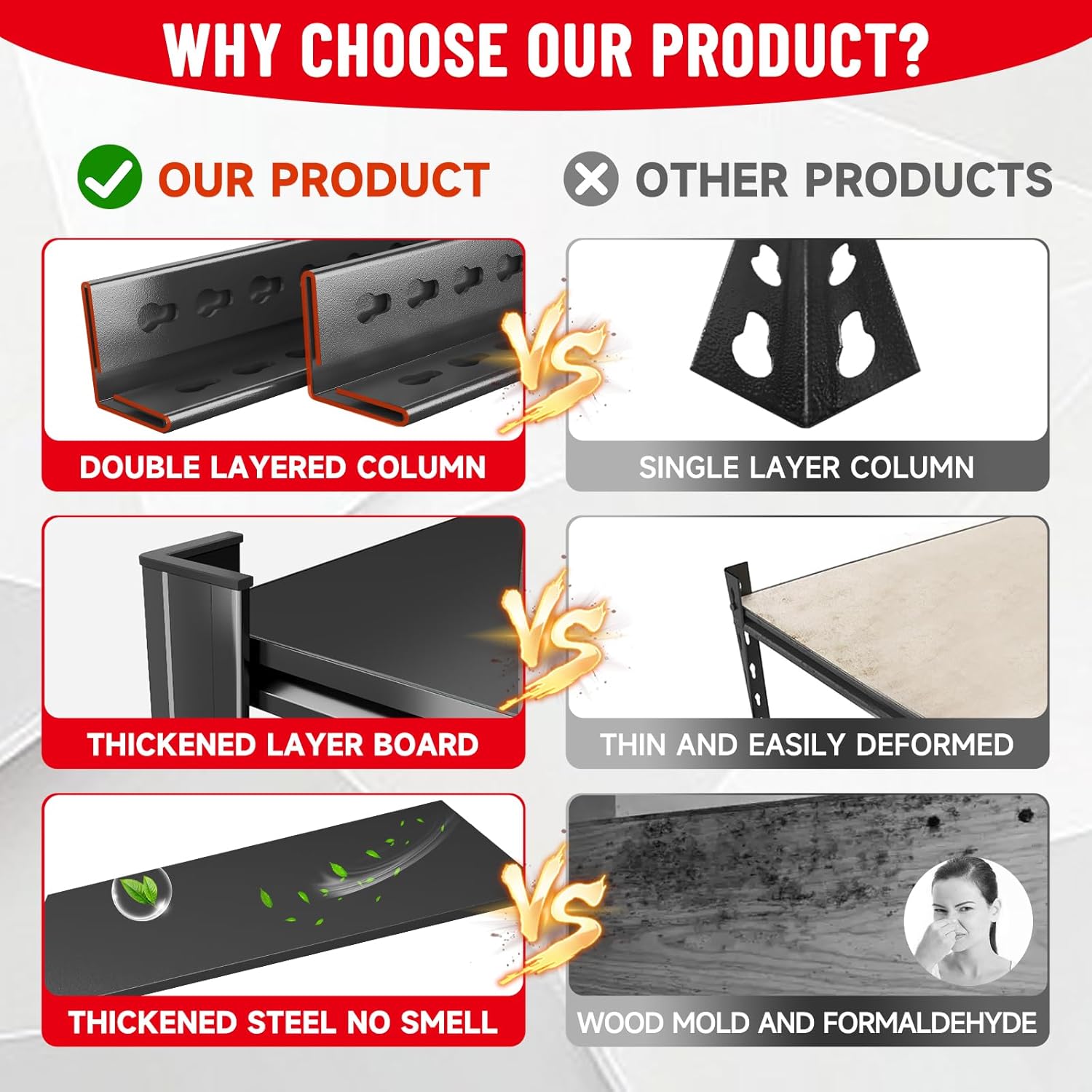 - 【Quality Assurance and Professional Support】 Our professional team provides 24/7 online service. Every step from production to delivery undergoes rigorous inspections and passes three distinct quality checks. The reinforced packaging with corner protectors safeguards your metal garage storage shelving unit during transit. Enjoy a one-year warranty with free returns within 30 days; if you encounter any issues, contact us immediately after delivery. We highly value your user experience and are committed to providing optimal service for your garage storage and organization solutions