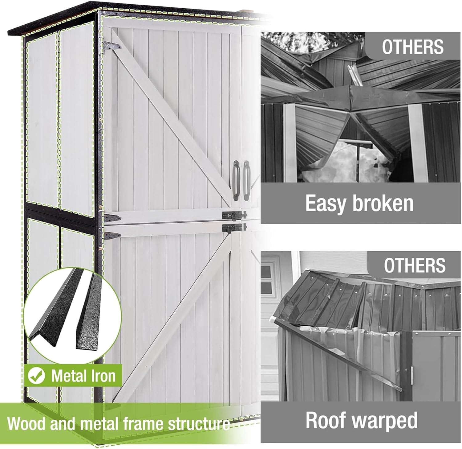 - 【Lockable Door and Sloping Roof】Lockable doors ensure security,preventing theft of items and avoiding accidental entry by small animals.Sloped roof for outdoor storage prevents rainwater accumulation and rust.