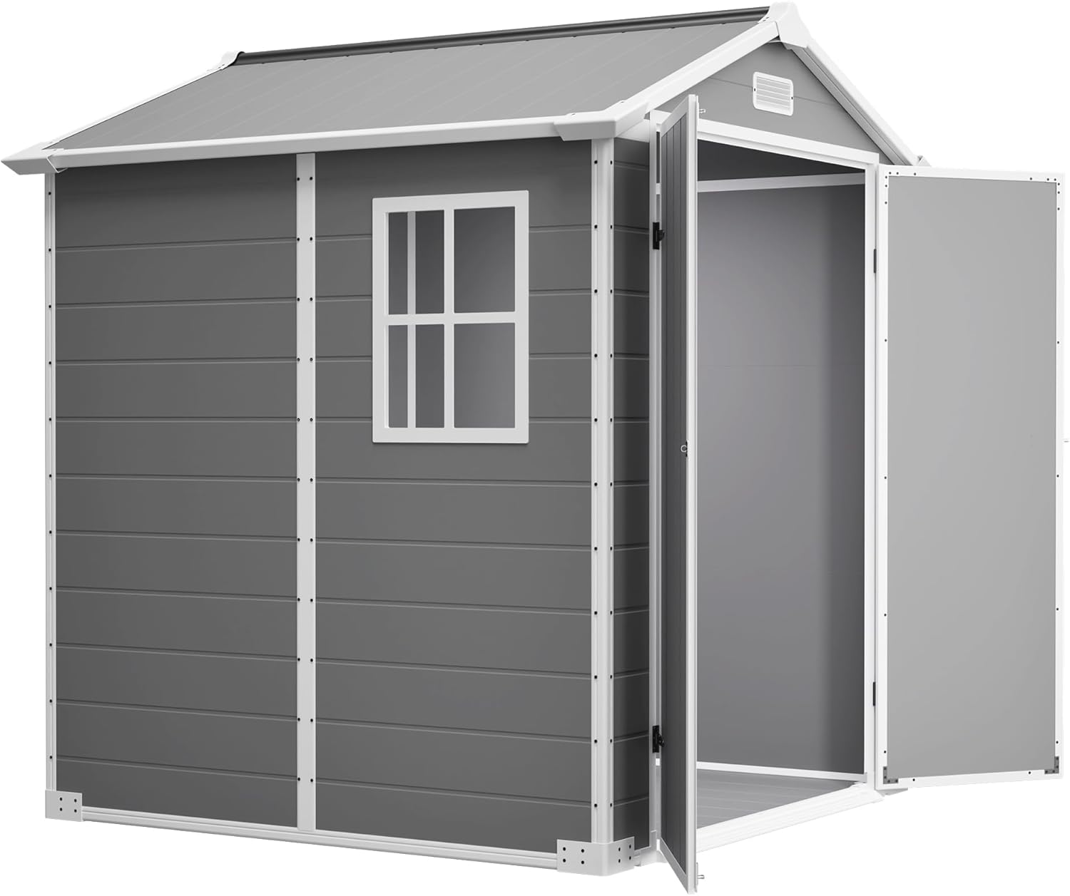 6x6 Resin Outdoor Storage Shed Kit-Perfect to Store Patio Furniture, Garden Tools Bike Accessories, Beach Chairs and Lawn Mower, Grey & White