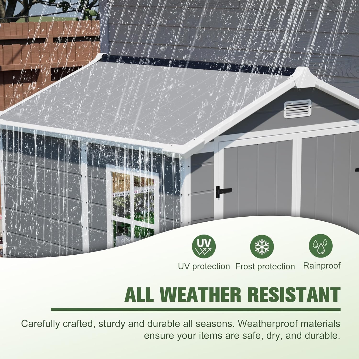 - 【Excellent Ventilation and Natural Light】The louvered vents above the door and the side window allow for efficient airflow, keeping the shed well-ventilated and reducing moisture buildup. The window design also allows natural light to enter, providing clear visibility of the interior and creating a bright and airy environment inside your garden shed. You won't have to fumble around in the dark when looking for your tools!