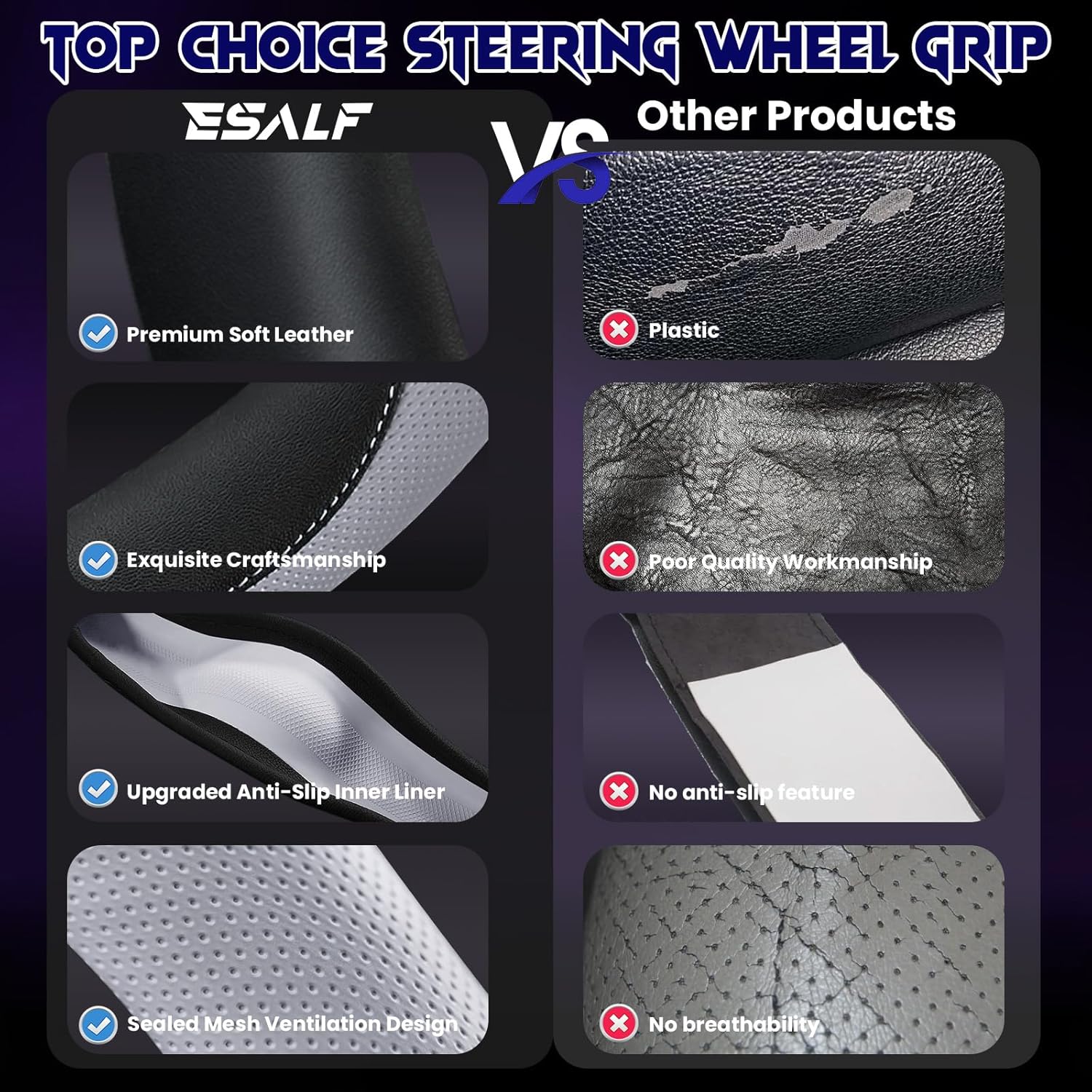 - COMFORTABLE GRIP:This steering wheel cover features 1,000+ ergonomic refinements for enhanced driving comfort and reduced fatigue during extended journeys.