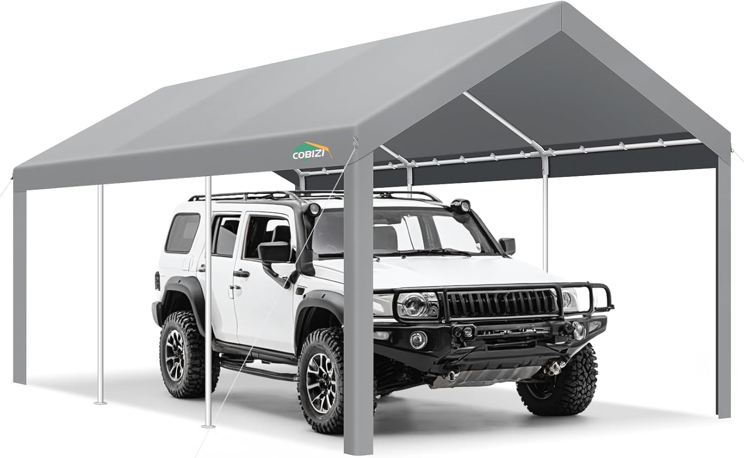 COBIZI Carports 10x20 Heavy Duty Car Tent Garage, Galvanized Frame Car Canopy Outdoor Shelter Waterproof & UV Protected with Windproof Ropes & Built-in Sandbags for Car Truck Boat, Gray